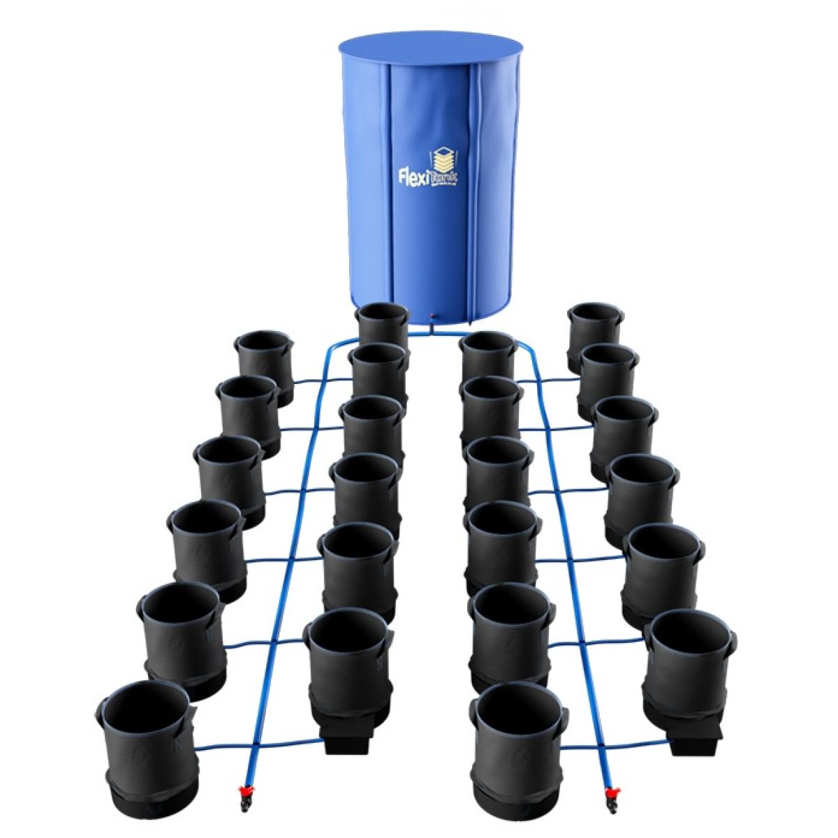 Choose from 4 to 100 Flexi. Pots in the modular Auto Pot XL Flexi Pot plant watering system. Combining Auto. Pot's power-free, water efficient, low maintenance, plant irrigation technology with high performance fabric pots. The 20. L Flexi. Pots supplied with these systems are an excellent alternative to plastic pots in that they stimulate plant growth by training the root structure rather than merely containing it. When root tips reach the porous side of a Flexi Pot they are 'air-pruned' - deterred from extending any further by the air outside. Secondary roots then develop, creating a fibrous root structure with vastly improved moisture and nutrient uptake. In the process, root circling is eliminated, making it possible to produce bigger plants from smaller pots. The porous Flexi Pot material also allows improved gas exchange in the substrate. Free to breathe the root zone can see dramatically enhanced oxygen levels - supercharging growth. XL Flexi Pot packs down 50% smaller and 50% lighter than a normal system. This makes them easy for growers to transport and store. The pots themselves are incredibly durable and can be reused repeatedly for years. KEY FEATURES: Complete plant watering system Fully automated Power-free No mains water required Zero waste Featuring 20. L fabric Flexi. Pots Fabric pots help to train and improve root structure Porous pot sides allow oxygen exchange in the root zone Growth is accelerated BPA-free, Lead-free fabric Guaranteed against off-gassing or leaching Provides a uniquely rigid base to help keep plants upright Irrigated responsively by the AQUAvalve water control device Includes suitably sized reservoir, all pipework and fittings Easily extended SPECIFICATIONS: 9mm pipe – Outside Diameter 9mm/Inside Diameter 7mm 16mm pipe – Outside Diameter 16mm/Inside Diameter 13mm Tank capacity - varies from 47. L - 750. L depending on size of system ordered Sizes available - 4 to 100 pots