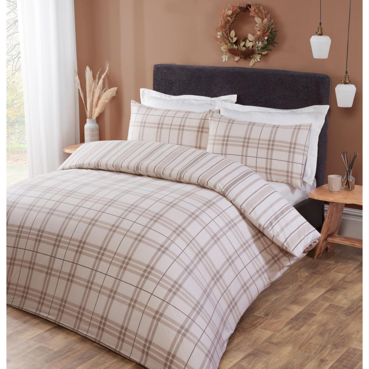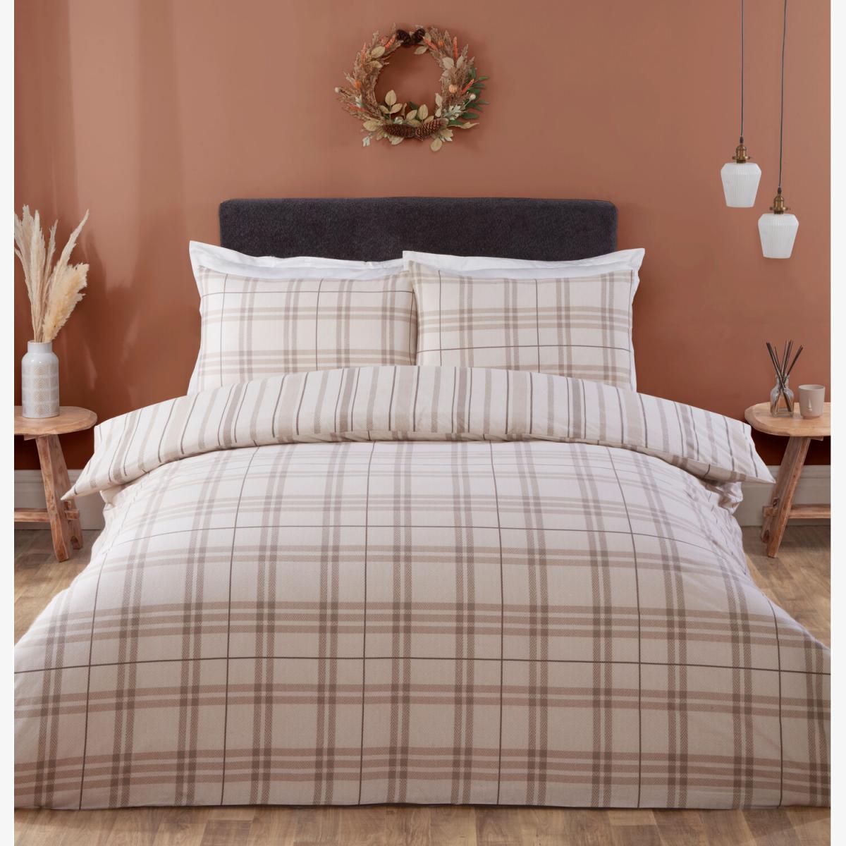Autumn Check Duvet Cover and Pillowcase Set - Brown / Superking