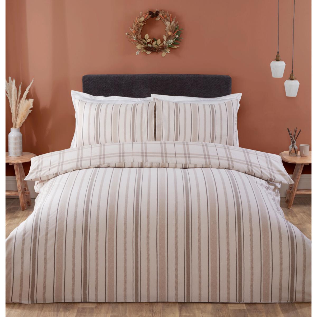 Get cosy and snuggle up with this Autumn Check Duvet Cover and Pillowcase Set. With an array of multi-tonal browns, this neutral-coloured bedding set will give your home a warm feel. With a simple check on one side and a stripe design on the other, you get two looks in one. Made from 100% cotton, this duvet set is also perfect for a homely country aesthetic.