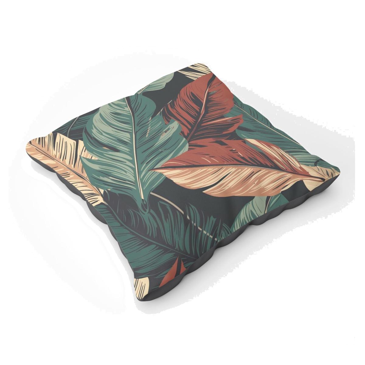 Autumn Colour Leaves Floor Cushion - Green