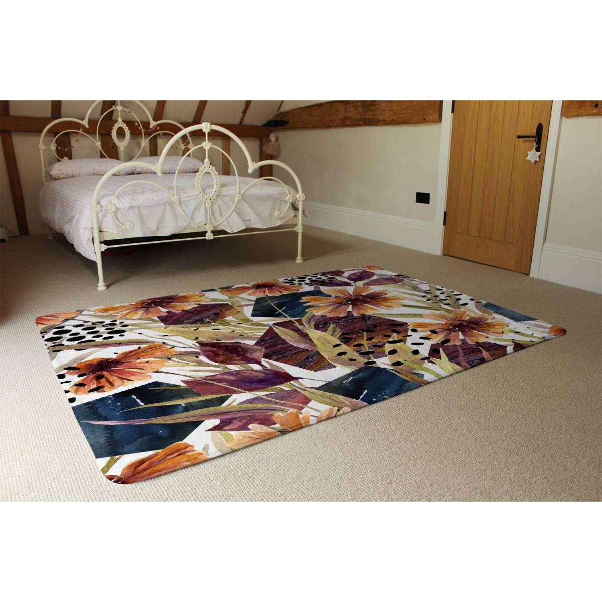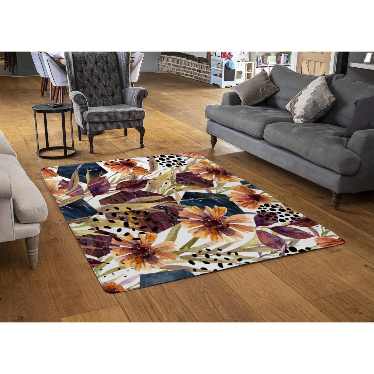 I love this bright, playful rug for adding a pop of colour and pattern to a space. Its orange tones can anchor neutral interiors, making it a focal point that still feels warm and inviting. It works particularly well in contemporary or eclectic settings, where bold prints and colours are embraced. For styling tips, pair it with solid-coloured furniture to let the pattern stand out or style it alongside muted accessories for a balanced look. Given its size, it’s great for bringing energy to smaller rooms like a study corner or as a statement piece in a living area. Just keep in mind that as it’s an artificial flower design, it lends a more playful, modern vibe rather than a lush botanical feel.