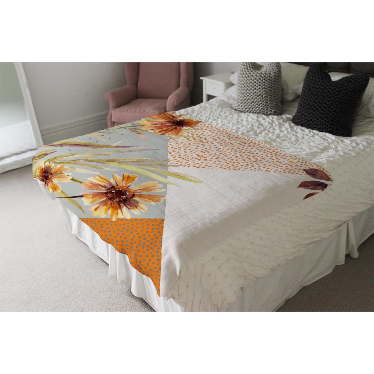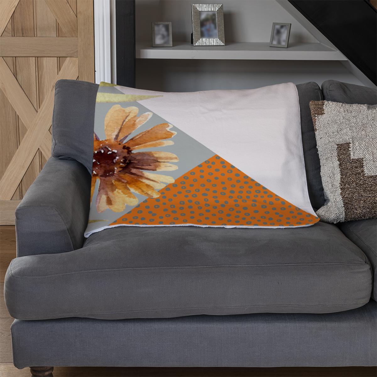 Autumn Geometric Shapes And Flowers Blanket - Orange
