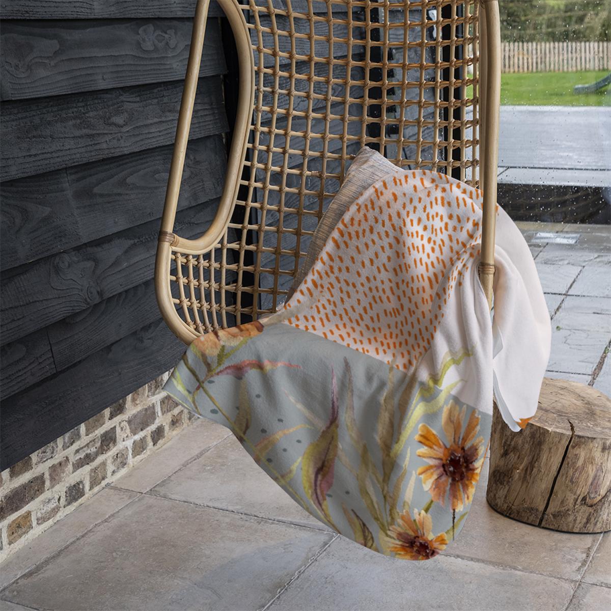 I really like this throw because of its vibrant orange tones and geometric and floral mix, which brings a touch of visual interest without overwhelming a space. It works particularly well in contemporary or boho styled interiors, where bold geometric patterns and pops of colour can be layered to create warmth. Practical styling tips include draping it casually over a sofa or armchair to add colour, or folding it neatly on a bed for a lively accent. Since the colour is quite striking, pairing it with neutral or muted furnishings will help it stand out, while also adding some texture and personality to the room.