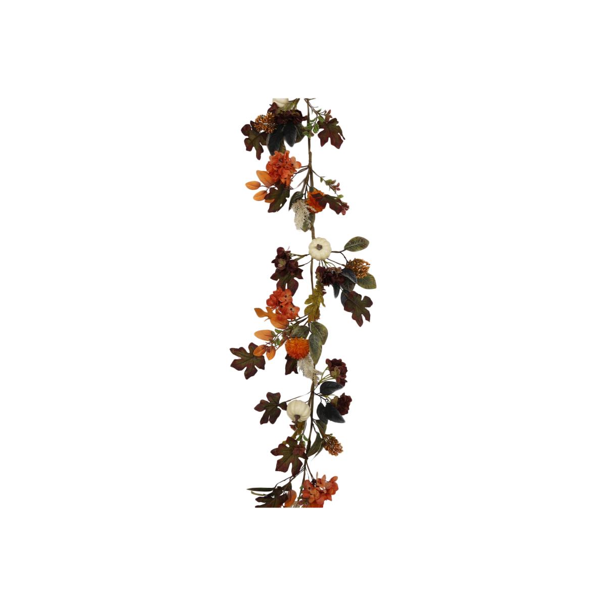 Add an eye-catching, autumnal atmosphere to your home with the help of this Autumnal Harvest Floral Garland. It features natural-looking leaves accented with mini pumpkins to bring a true sense of autumn to your interior. Excellent for adding to shelves or simply hanging up as a cute decoration, this garland will add a charming, rustic feel to your home.