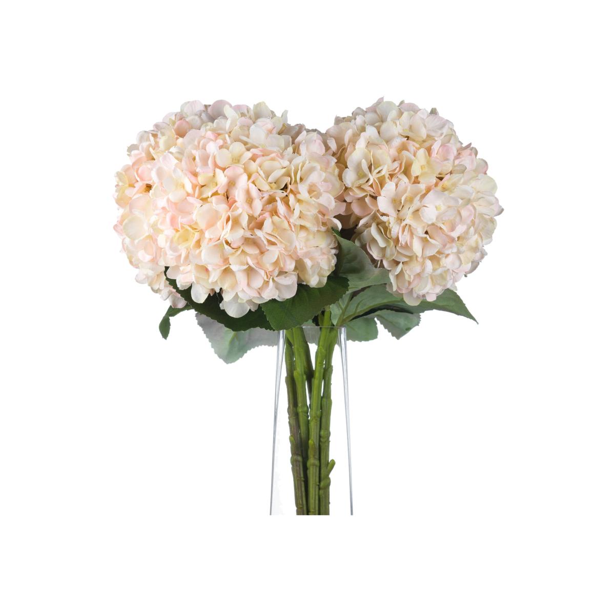 A single stem of large headed hydrangea in creamy peach tones with a hint of blush. This stem will take you through summer to autumn with ease. Display an odd number in a vase of your choice to bring instant softness to a space, or mix with some foliage for a fuller bouquet. This bloom also works especially well with Cream Dahlia or Pink Allium for a seasonally inspired, full vase look. Regular floristry points along the wired stem of these beautiful faux flowers make trimming them to length simple (wire cutters recommended) or in many cases you'll find can bend them to fit an opaque vase.