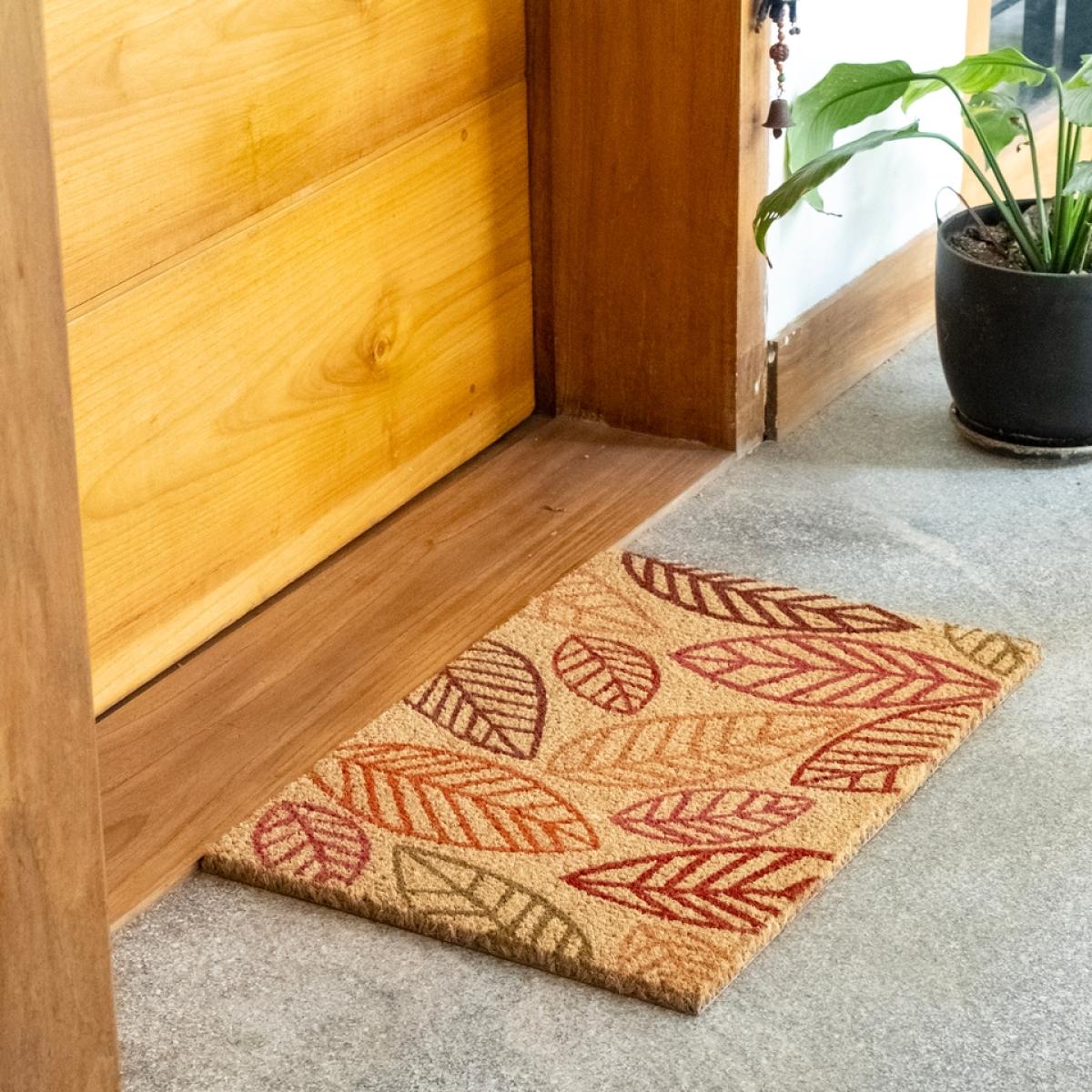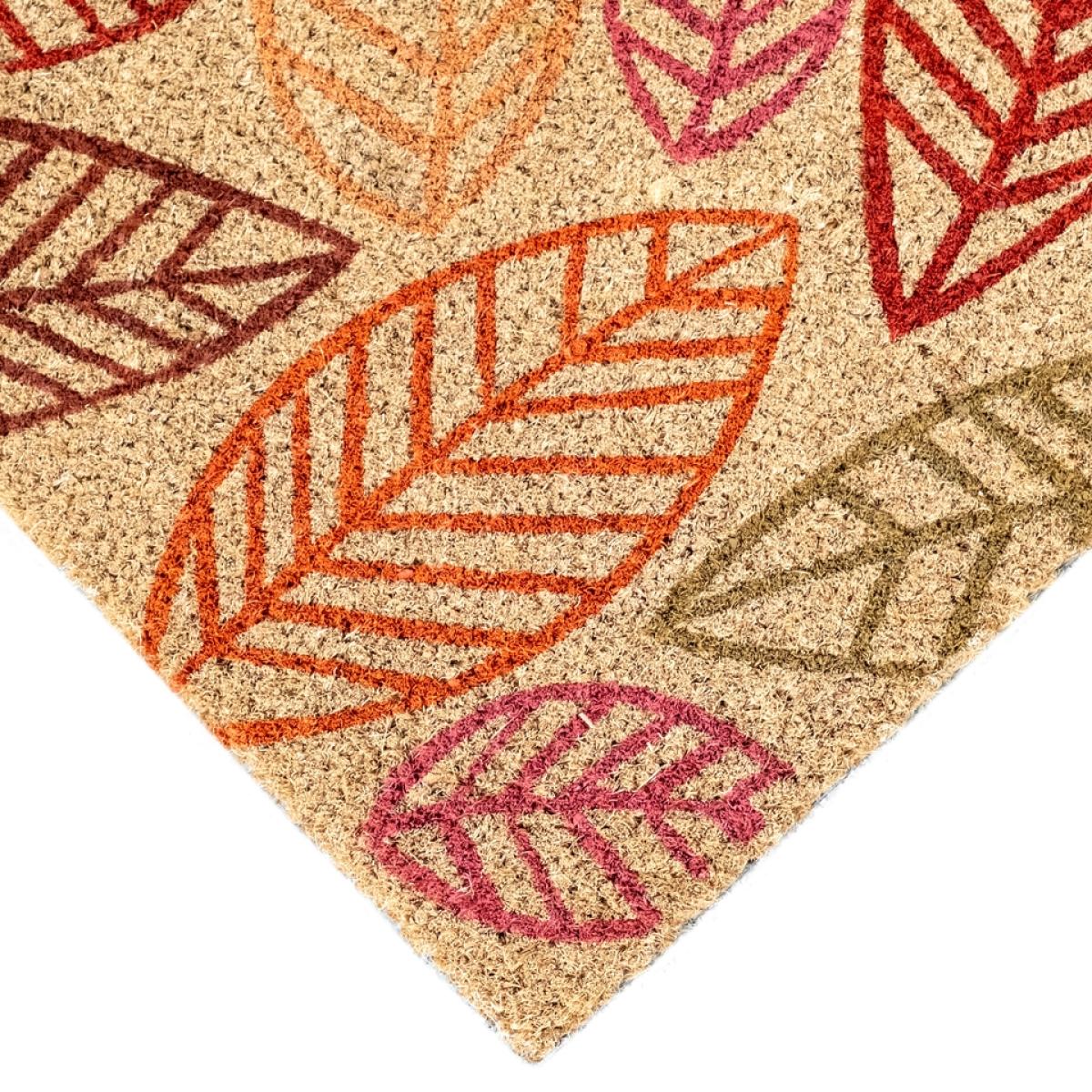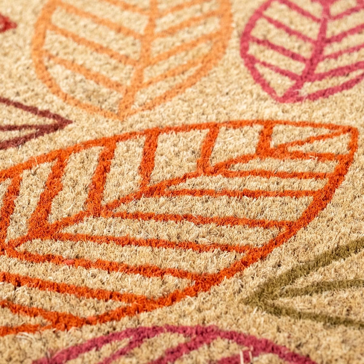 Add some seasonal style to your door with this Autumn Leaves natural coir doormat. Anti-skid PVC backing.