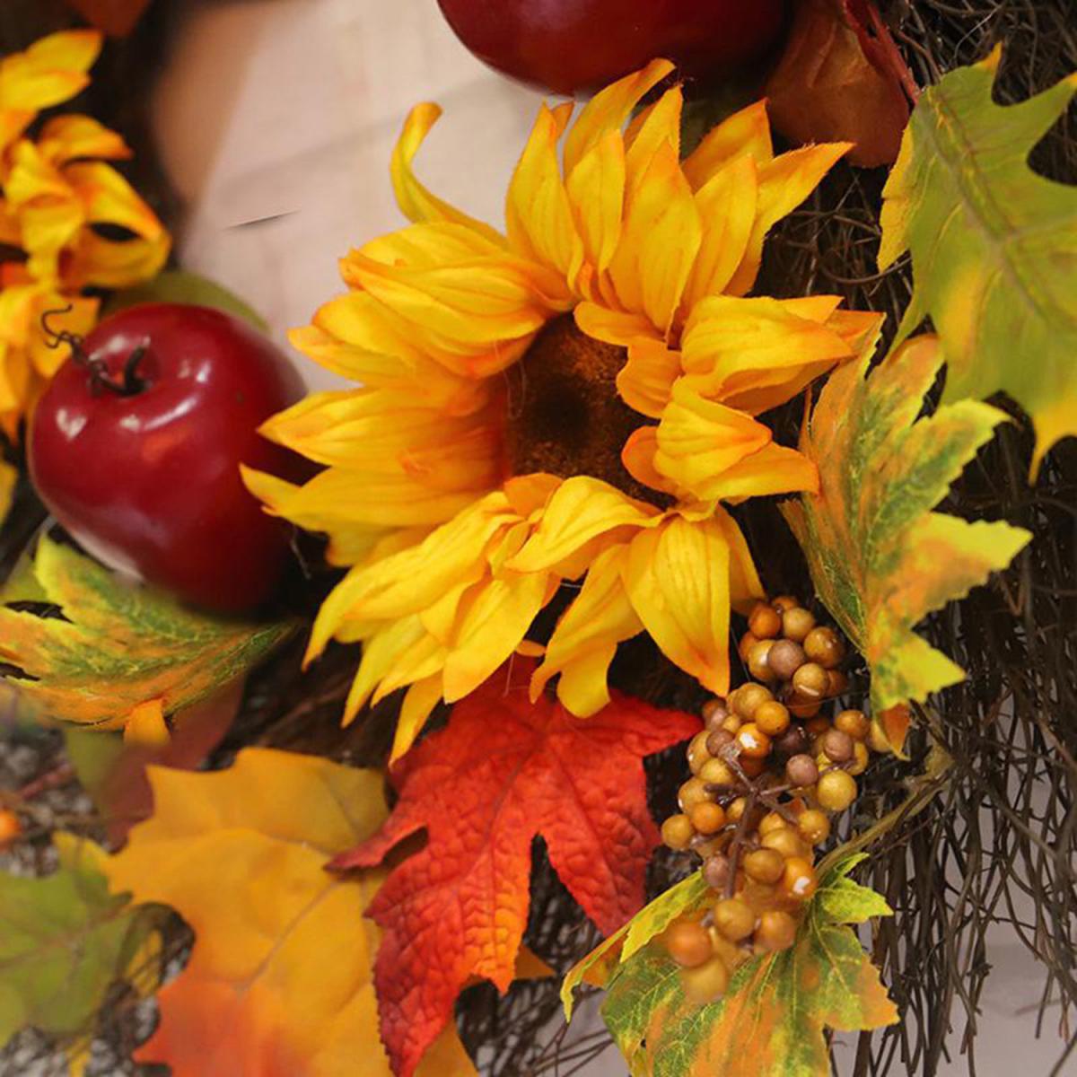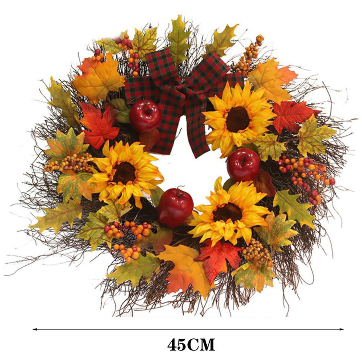 Embrace the festive spirit of Halloween with our vibrant wreath. Adorned with sunflowers, berries, cherries, and a bowknot on a woven branch ring, it's the perfect decoration piece you're looking for. When lit at night, it exudes a calming vibe and creates a mesmerizing ambience. Hang it on your door to welcome Autumn just around the corner.