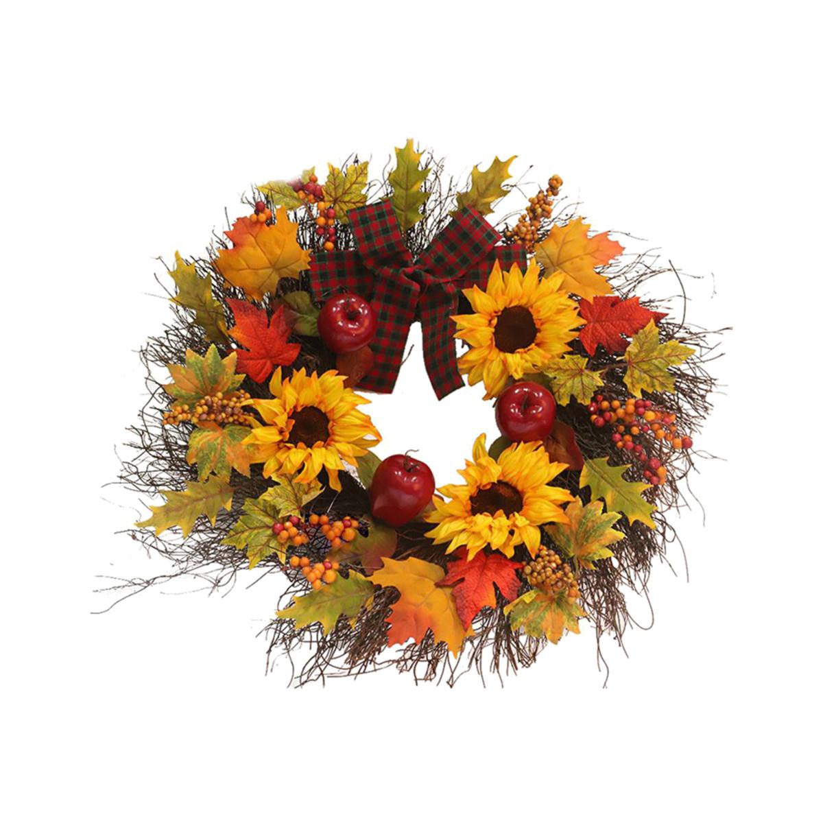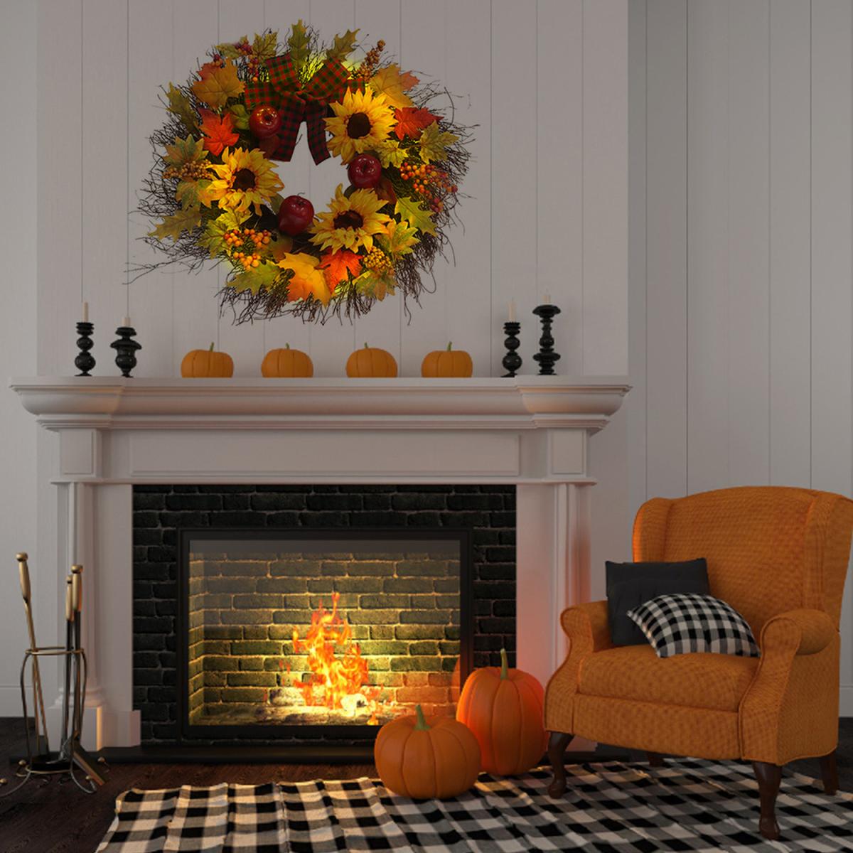 Autumn Maple Leaves Sunflowers LED Wreath - Orange