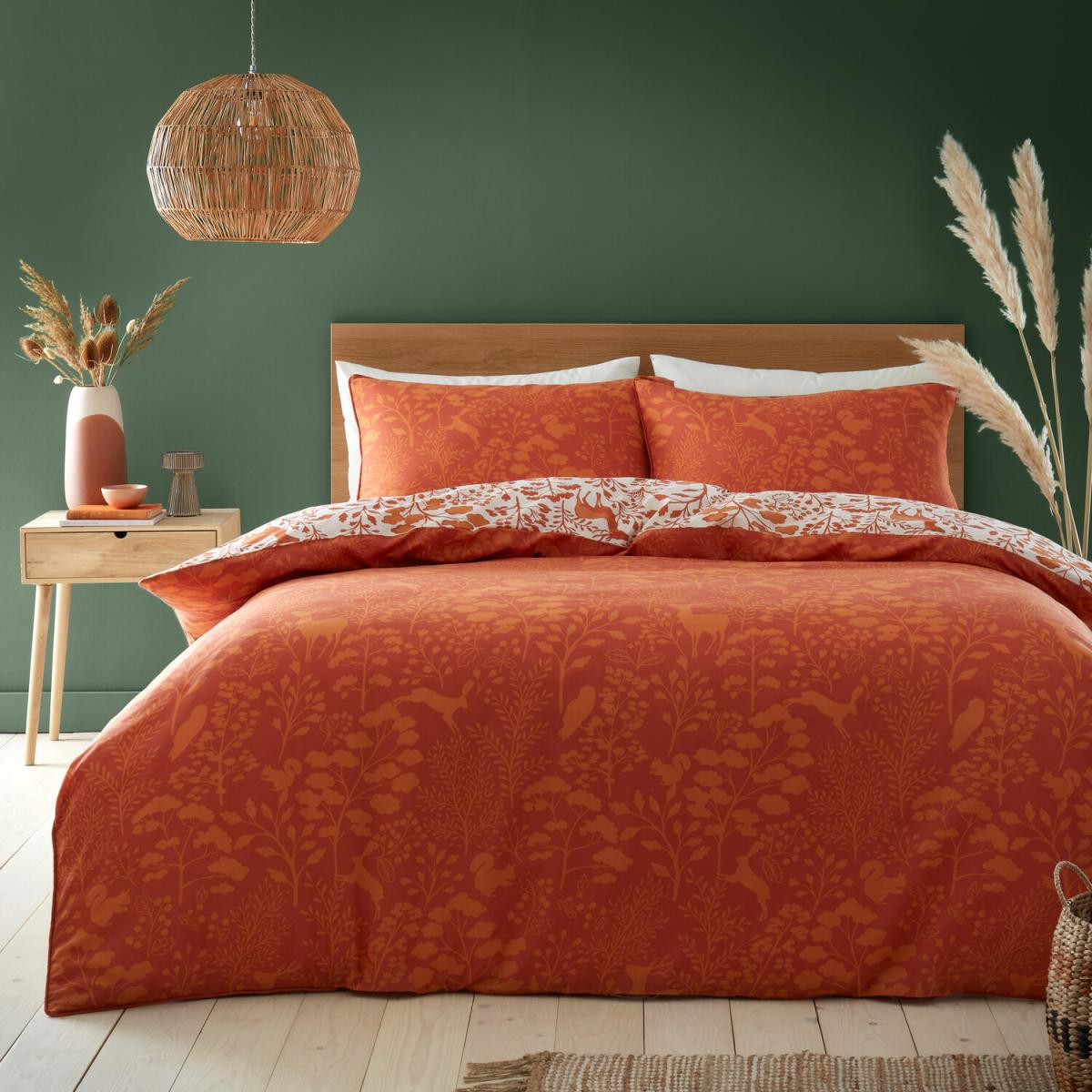 Bring a sense of warmth to your bedroom with this Autumn Meadow Duvet Cover and Pillowcase Set. As the weather gets cooler, the comfortable polycotton blend and rust colouring will help make you feel cosy as you snuggle into bed. Offering a rustic forest-inspired print, this reversible set is a wonderful addition to any bedroom, with a piped edge for added sophistication.