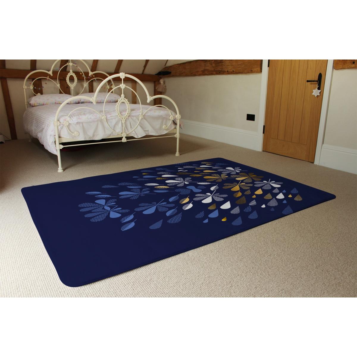 I love this autumn print rug for its vibrant blue tones and dynamic butterfly motif, which adds a lively yet sophisticated touch to a space. It works particularly well in modern or contemporary interiors, especially those with muted colour palettes, as it can serve as a striking focal point. Practical styling tips include pairing it with neutral furnishings to really let the pattern stand out, or layering it with textured throws and cushions for a cosy yet stylish look. Its size makes it versatile for living rooms or bedrooms, where it can anchor a seating area or enhance a bed set-up while adding colour and character.