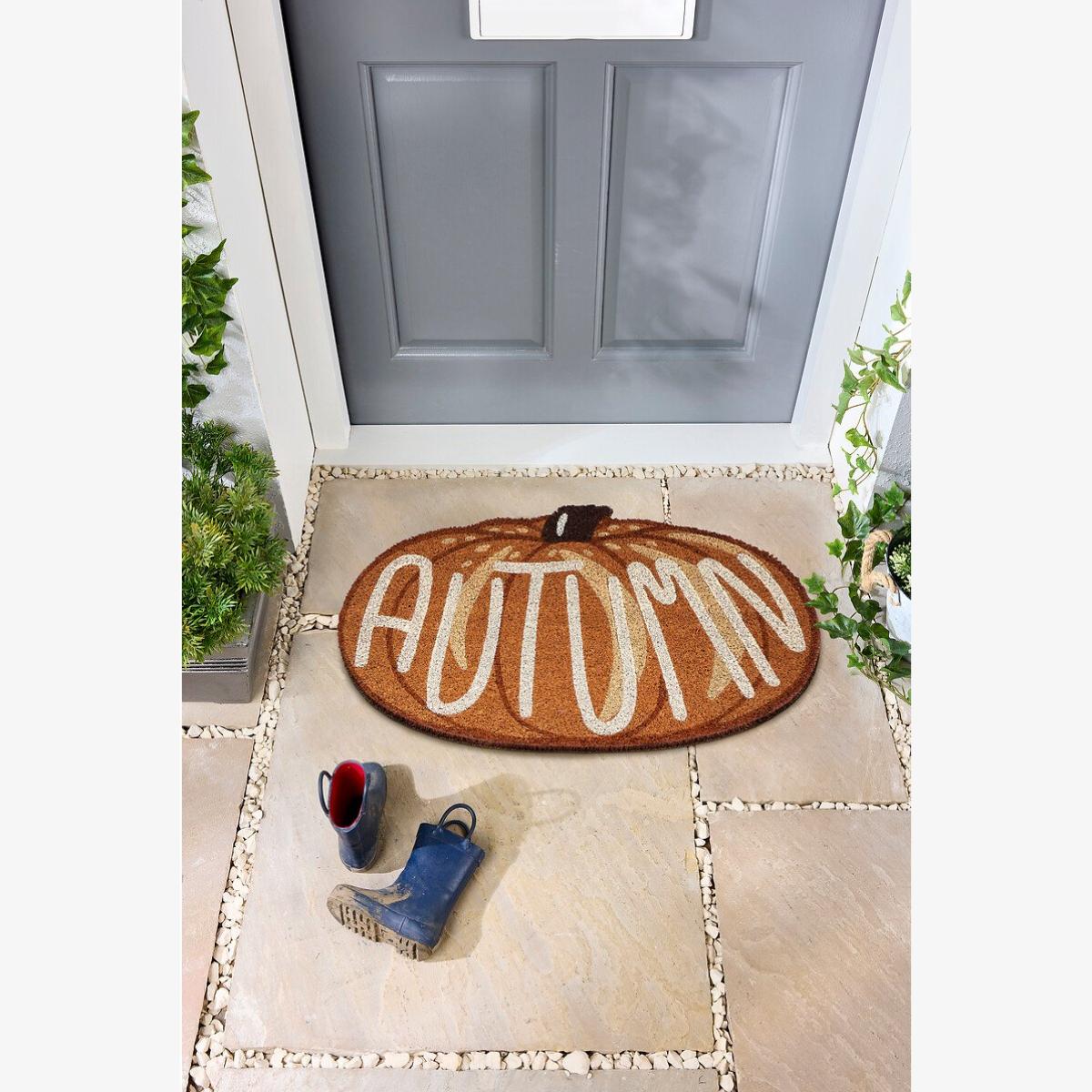 Autumn Pumpkin Slogan Coir Doormat