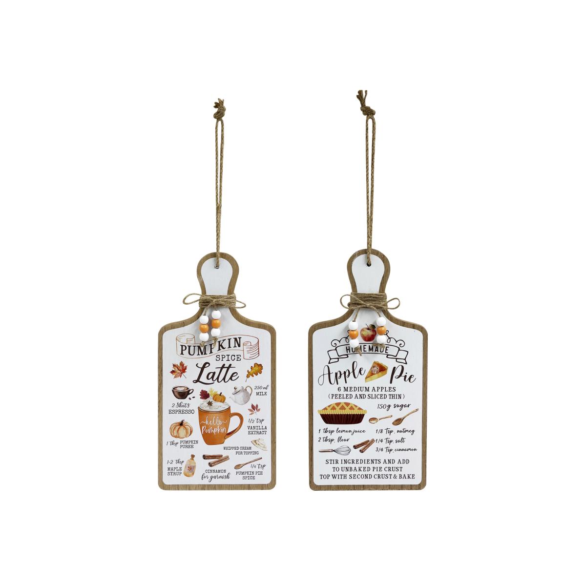 Perfect for making your space feel cosy this autumn by hanging one of our Autumn Recipe Illustrated Plaques. The plaque is inspired by traditional recipe boards and is printed with a recipe for either a Pumpkin Spice Latte or a classic and delicious Homemade Apple Pie, both sure to make you feel warm inside! The plaque is printed with beautiful imagery and is finished with natural rope and coordinating beads for a harmonious look. It will be a fantastic addition to your kitchen or dining space.