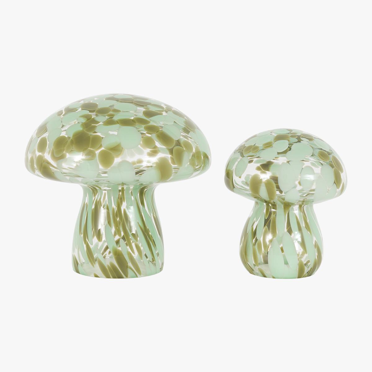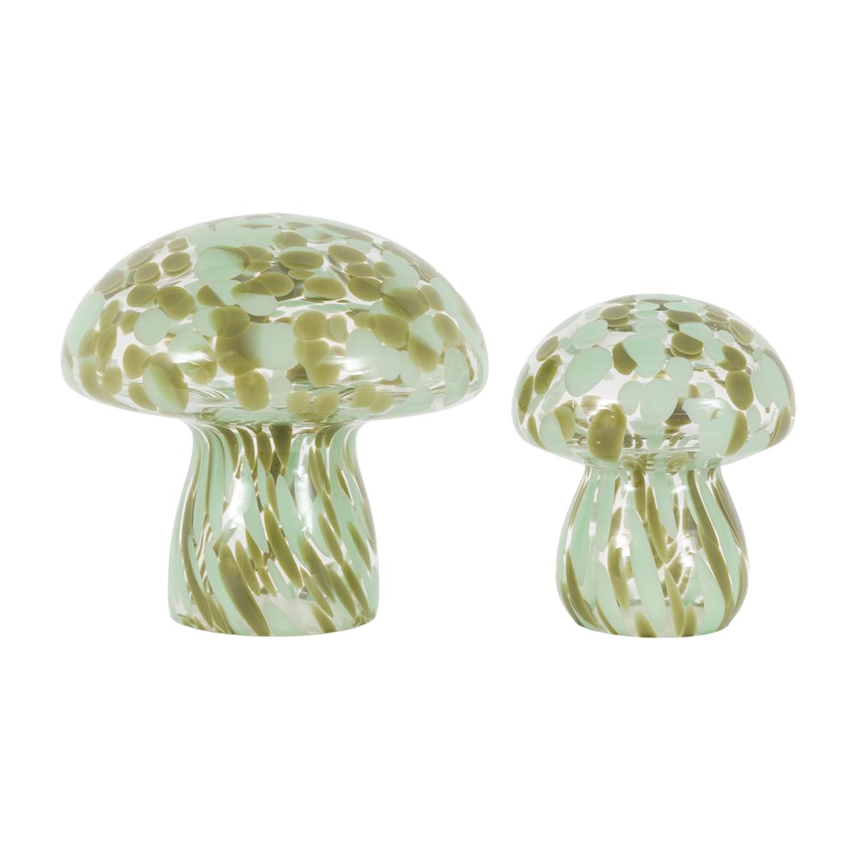 Autumnal Glass Mushrooms in Forest Green, Set of 2
