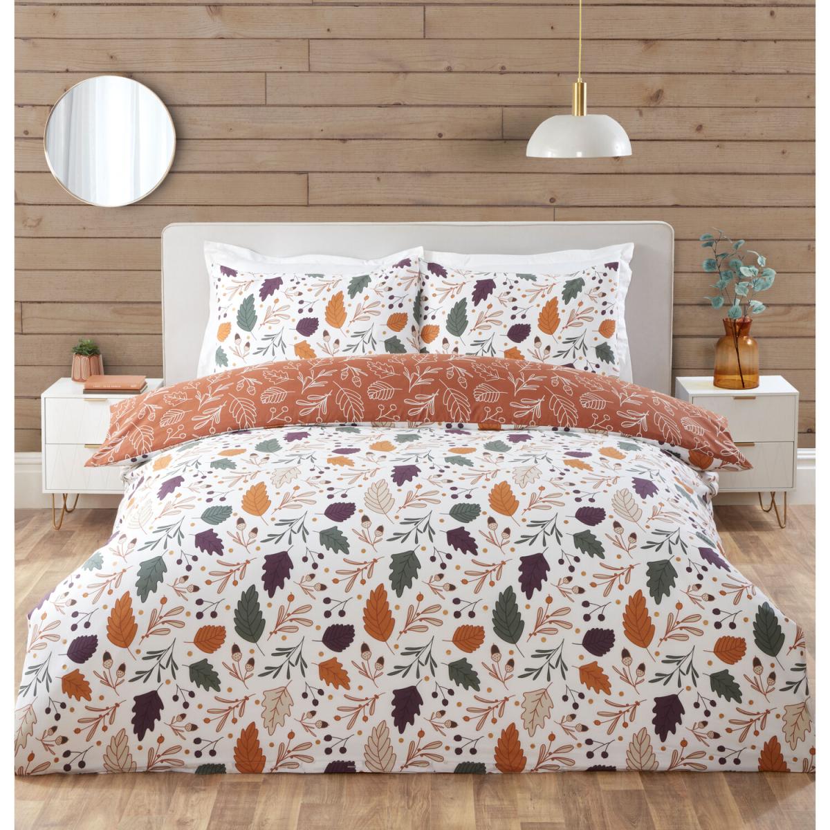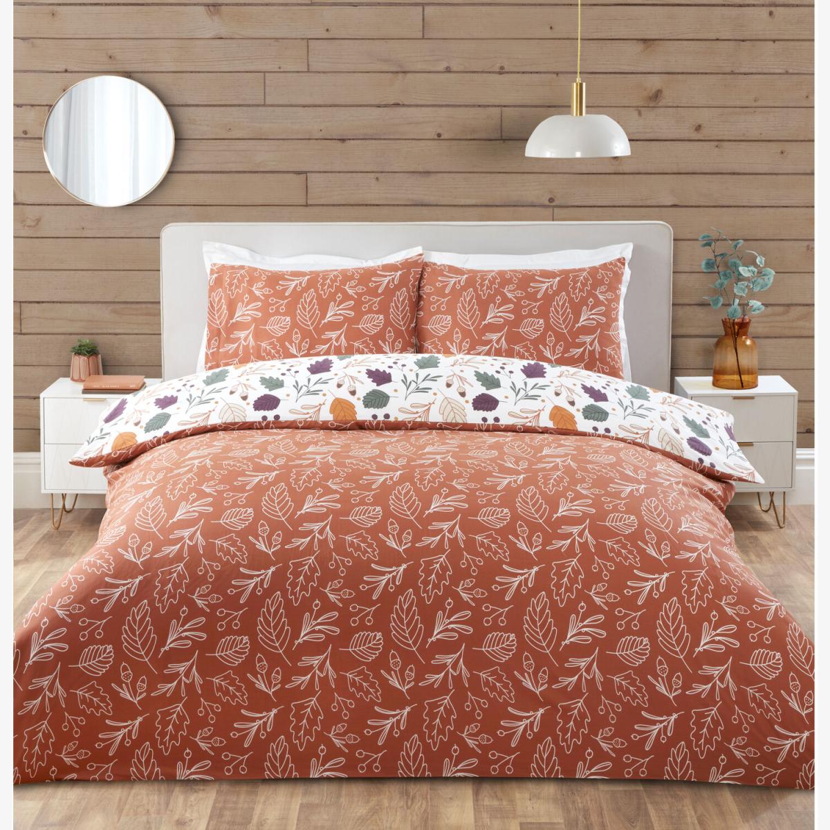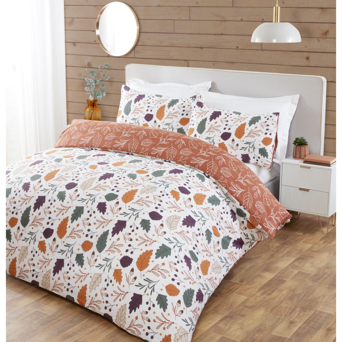 Autumnal Leaves Duvet Cover and Pillowcase Set - Rust / Single
