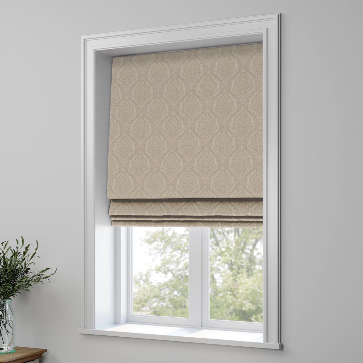 * Choose from 3 linings* Select your fitting type* Pick a side for the operating chain Add a personal touch to your home with the Auvergne range of Roman blinds that feature a gorgeous traditional design.**Choosing your lining:*** Blackout provides minimal light disturbance in your home making it perfect for bedrooms. * Thermal helps to keep the warmth in and the cool air out meaning it’s great for family rooms or lounges. * Our Standard Lining is perfect if you like the glow of natural light whilst your curtains are closed whilst still maintaining your privacy.**Choosing your fitting type:*** Inside the recess: this gives a tidy, snug finish as it’s made to fit your window exactly. * Outside the recess: this option is great if you don’t want the blind to be visible from the outside when it’s drawn up.**Choosing which side you’d like the operating chain:*** Think about where your blind will be situated and what furniture may be near it – choose the side that is easier for you to access.**Need help deciding or measuring?**Book a free appointment with one of our consultants! dunelm. com/category/made-to-measure/book-an-appointment).**Child Safety:**We add clips to the back of our roman blinds to attach the cords to the fabric. They also double up as a child safety feature. If pressure is exerted the clips will detach to prevent the risk of strangulation. Please read our [Blinds Safety Guide](https://www. dunelm. com/info/buying-guides/blinds-safety-guidance) for more information. If the clips detach accidentally during normal use, they can be easily re-clipped back into place. Please note: If your measured width is over 130cm your blinds may come with a fabric join to provide the full width required.