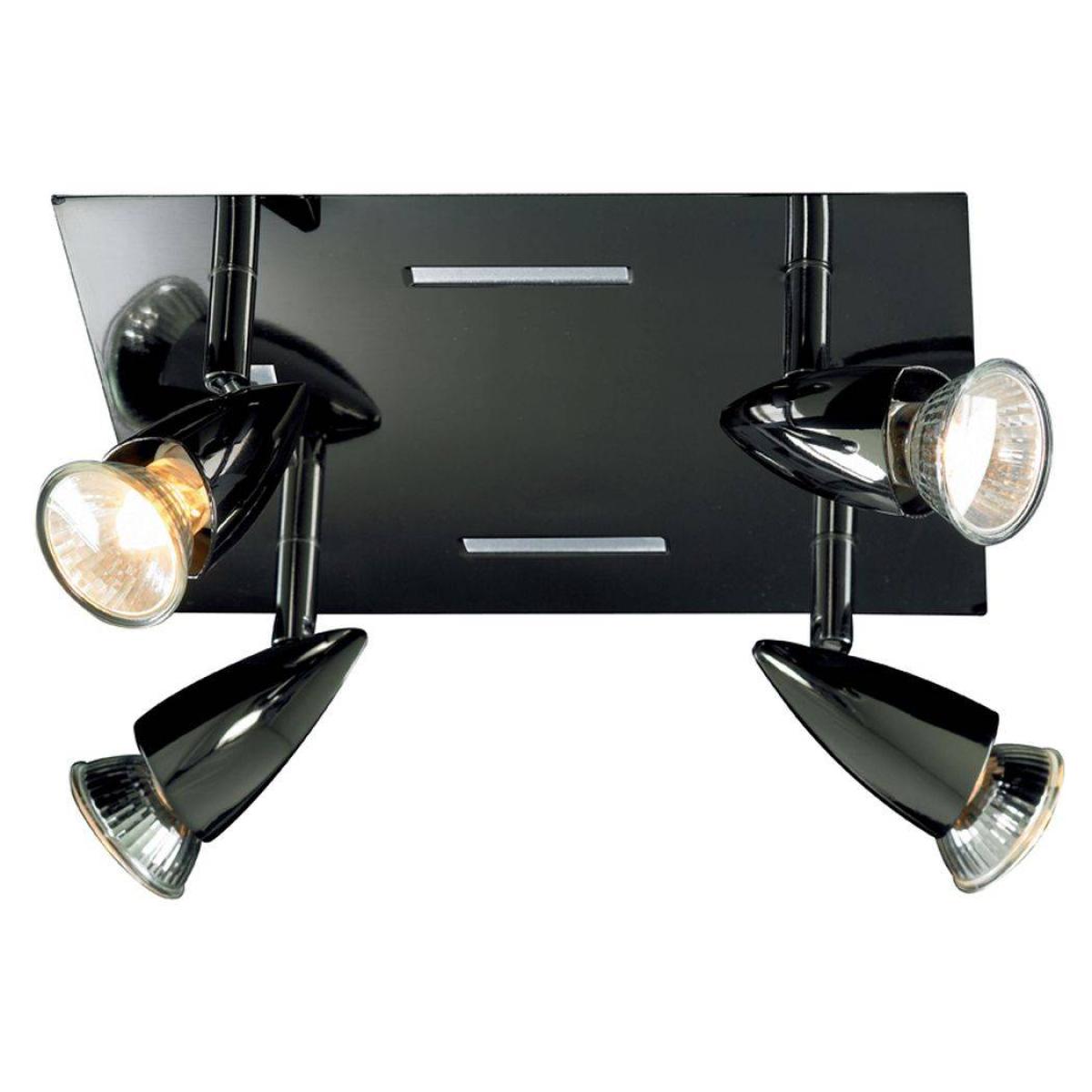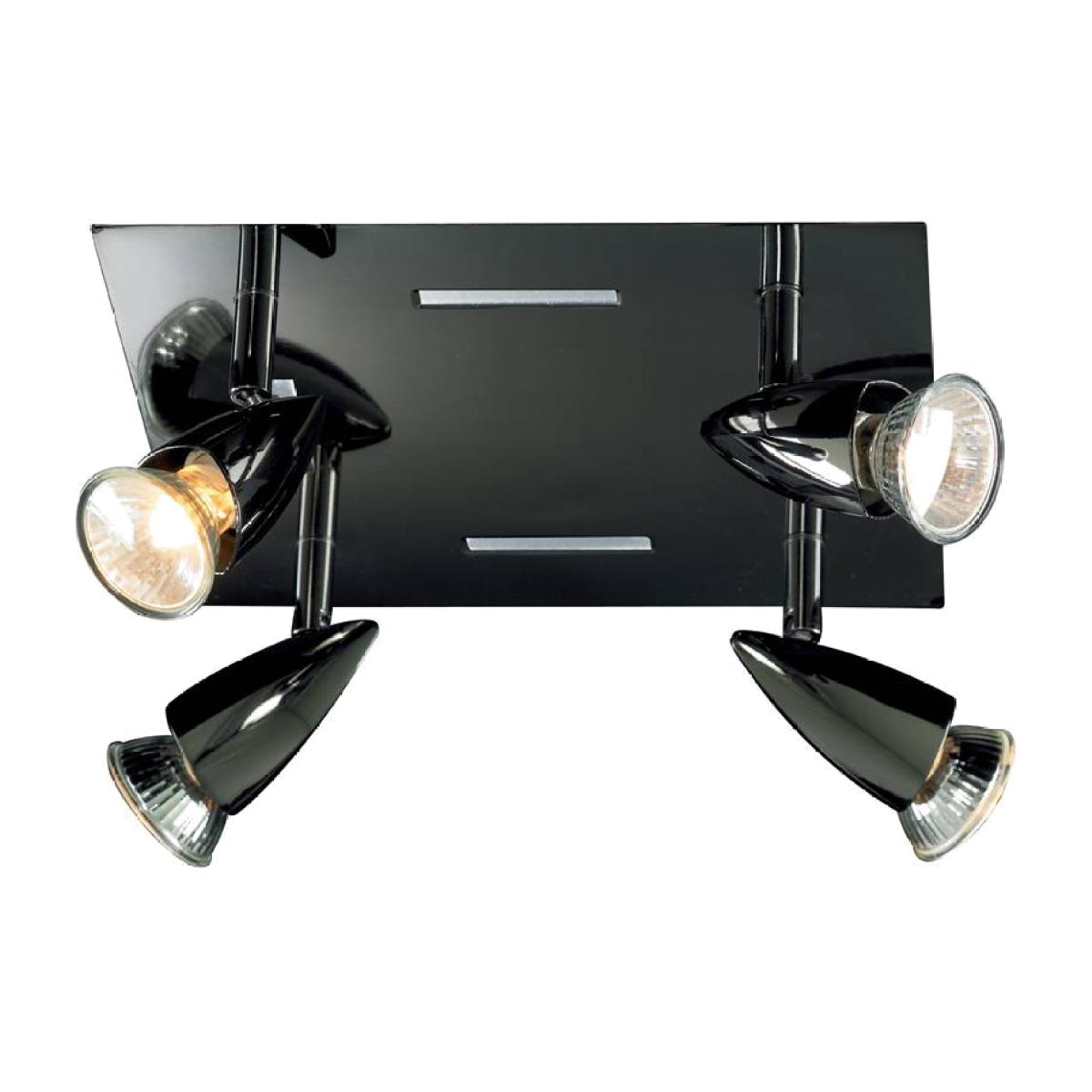 Contemporary Spotlight Plate finished in black chrome.. The Auxerre 4 Spotlight Plate is a highly modern design with black chrome finish. The ceiling light features 4 adjustable conical shaped spotlights which suspend from a square plate setting.. We have a range of GU10 LED light bulbs in a varity of colour tones: Warm White, Cool White and Daylight.