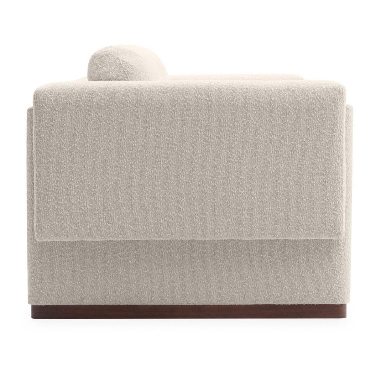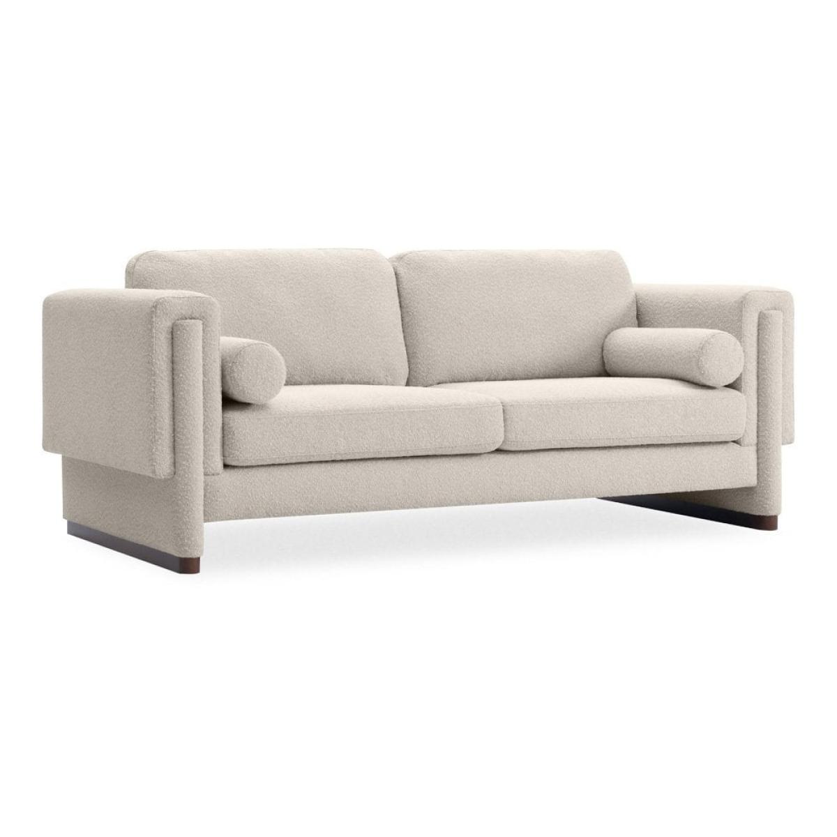 The Ava 3 Seater Sofa is a beautiful mix of classic design with a 70s revival twist, perfect for any living room. The wood detailing on the legs contrasts against the soft speckled stone boucle in a light neutral hue. With its comfortable bolster cushions, curved lines, and soft inviting seat, the Ava Sofa has an understated style that will slot into any interior. For a rich depth of colour and unique softness, our boucle used in this sofa is not only of the highest quality but it is made from recycled PET yarns so it is kinder to the environment too.