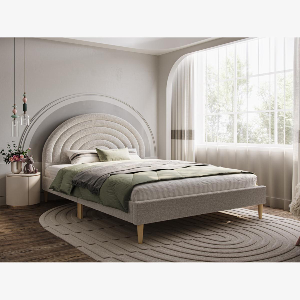 I love this bed's soft boucle upholstery, which adds a cosy, tactile element to any bedroom. It works particularly well in contemporary or Scandinavian interiors thanks to its clean lines and neutral grey tone, but it can also complement more eclectic spaces with textured or patterned accessories. For styling, consider pairing it with subtle colours and layered bedding to emphasise its plush quality, and add a few decorative cushions to enhance the inviting feel. The bed's understated elegance makes it versatile, so it works just as well with minimalist decor as with more detailed schemes, providing a comfortable yet stylish centrepiece.
