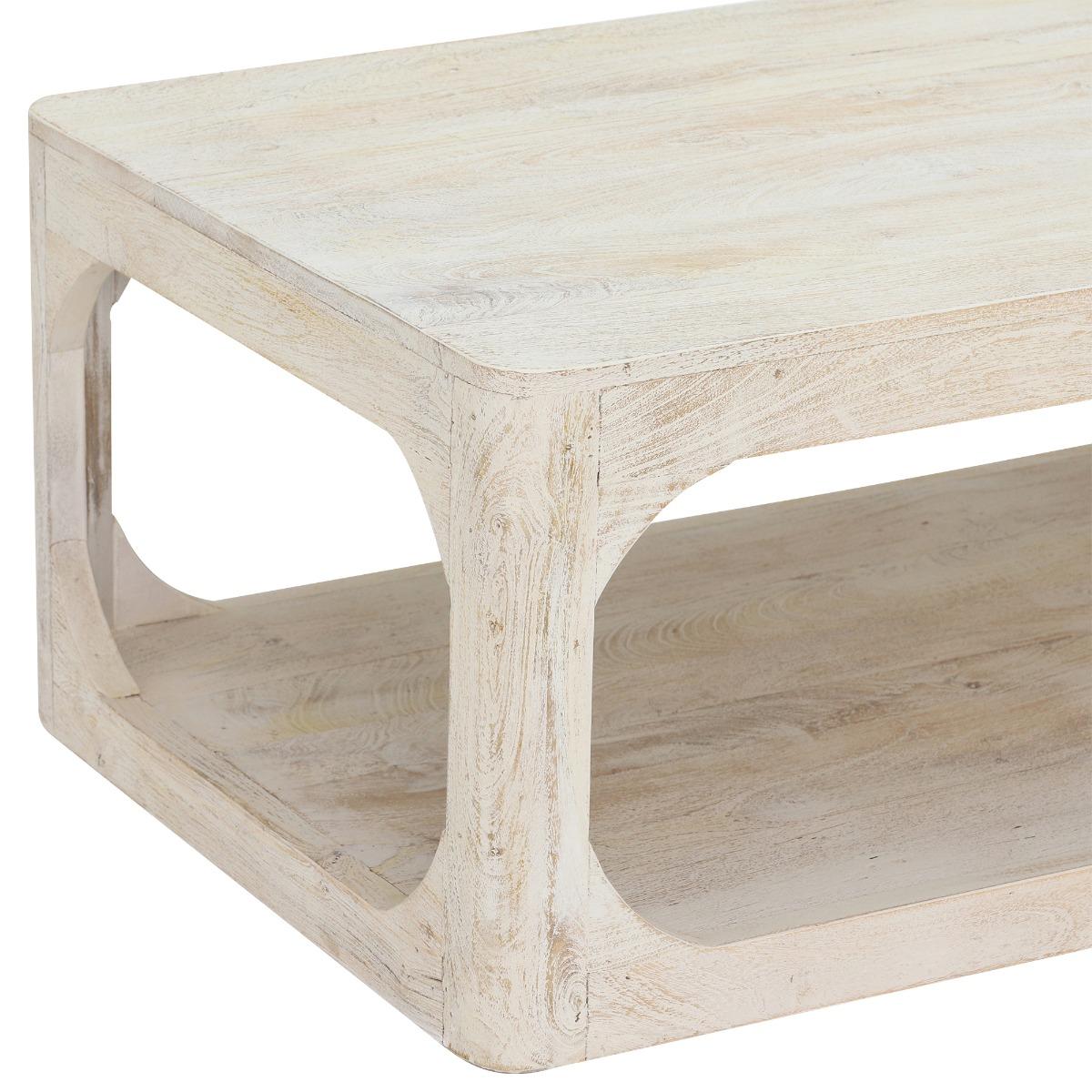 I’d reach for the Ava coffee table whenever I want a sleek, low-profile centrepiece that still makes a statement. Its softly rounded edges and bleached-white finish work brilliantly in Scandi-inspired or coastal schemes, while the generous lower shelf keeps clutter at bay - stack magazines or display woven baskets for instant texture. Styling is simple: keep the top clean with just a couple of sculptural objects or a single low vase to maintain that airy feel. Pair it with mid-century sofas or minimalist armchairs in natural fabrics, and layer a neutral wool rug beneath to anchor the seating area.
