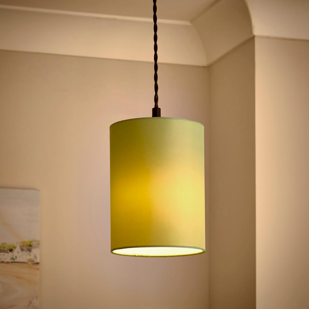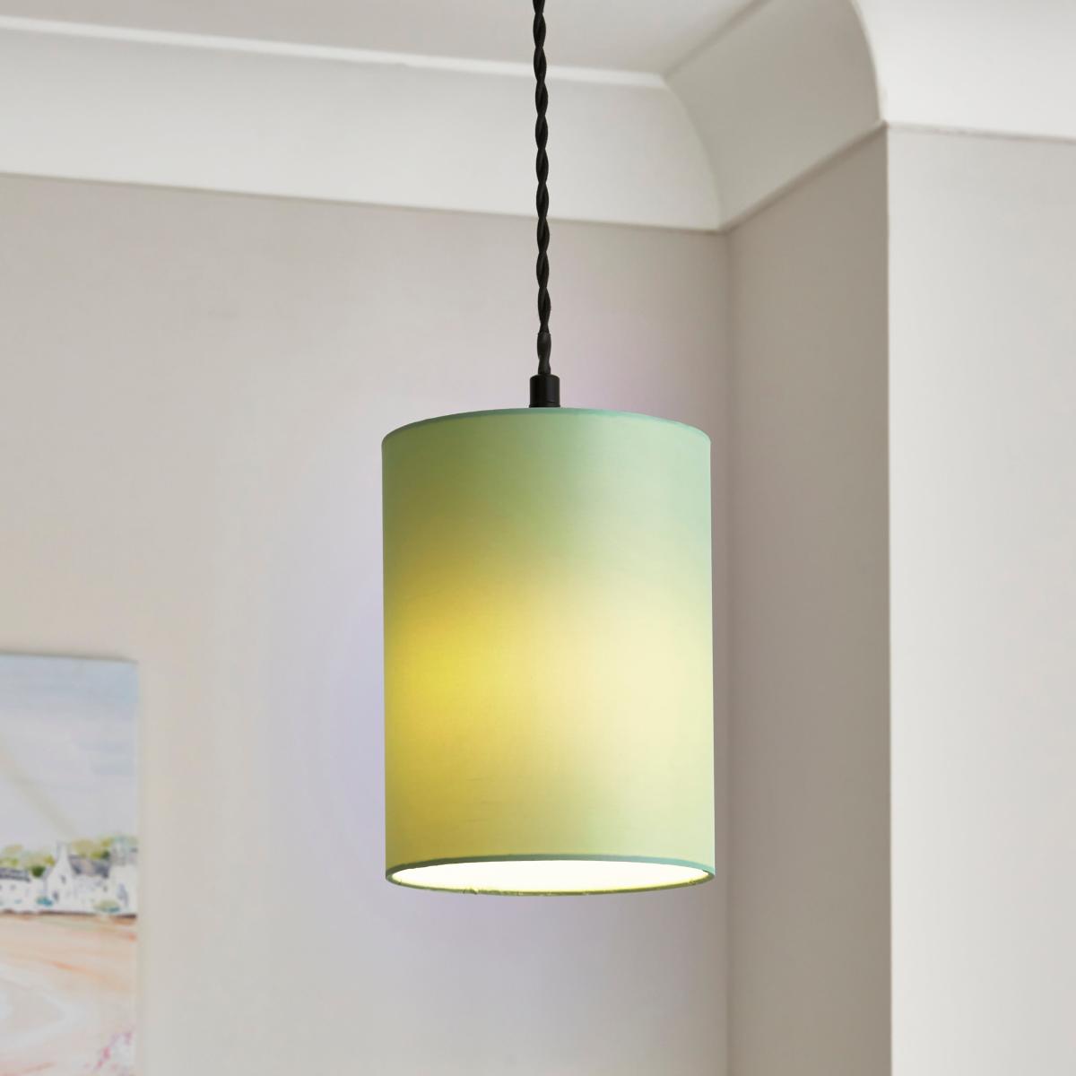 * Contemporary Design* Bottle Green Cylinder Shade* Available in three sizes* Made from Polycotton The perfect shade for a contemporary space, the Ava Bottle Green Cylinder Shade features a timeless design suitable for a range of home interior styles. This Drum Shade is made from high quality polycotton fabric and is available in three sizes. Suitable to use as a ceiling pendant or a table lamp shade.