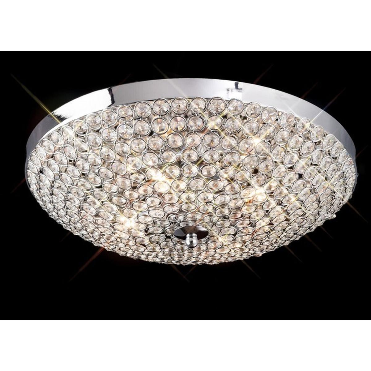 This flush ceiling fitting is a great choice for adding a touch of glamour to any space. I love how the polished chrome finish paired with the clear crystals creates a sleek, contemporary look that can elevate both modern and transitional interiors. It works particularly well in living rooms, bedrooms, or even hallways where you want to introduce some sparkle without overwhelming the space. For styling, consider pairing it with minimalist furnishings to let the light fixture be a focal point, or combine it with metallic accents for a cohesive, luxe feel. Practical tip: ensure your room has enough height or consider installing it in rooms with lower ceilings to keep the look balanced and comfortable.