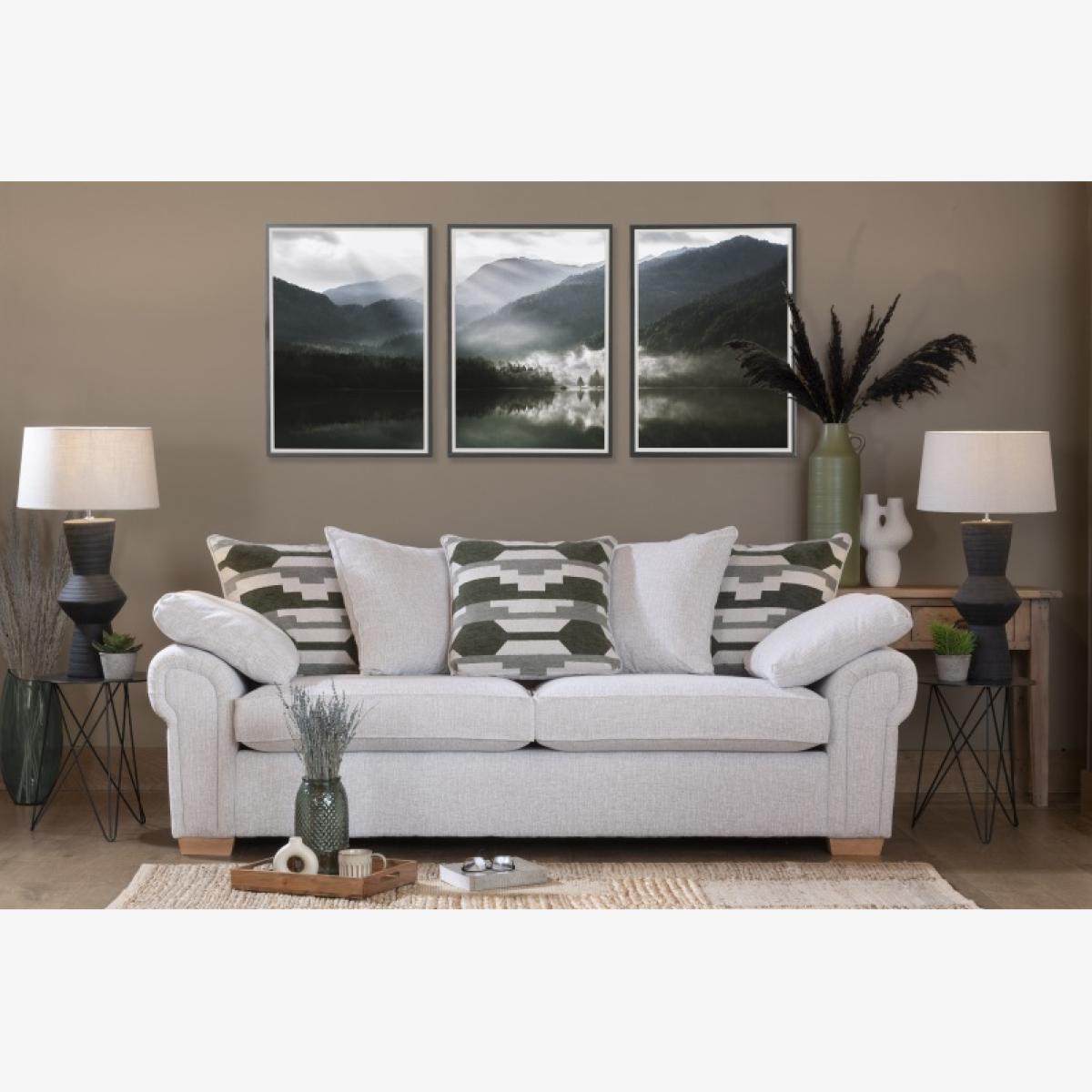 Stretch out in true comfort with the Ava Grand Pillow Back Fabric Sofa — a spacious statement piece designed for those who love to lounge in style. With its oversized silhouette, plush pillow-back cushions, and soft fabric upholstery, this sofa invites you to sink in and stay a while. The generous seating space is perfect for family movie nights, lazy Sundays, or entertaining guests with ease. Each pillow back cushion is thoughtfully designed for sink-in support, while the deep, cushioned seat ensures ultimate relaxation. Finished with subtle detailing and a sturdy frame, the Ava Grand Sofa pairs timeless design with everyday durability. Whether your space is modern, cozy, or somewhere in between, this sofa adds warmth, softness, and undeniable presence. Features: Grand-scale design for maximum lounging space Soft-touch fabric upholstery with a cozy, inviting texture Pillow back design for sink-in comfort and support Deep, plush seating ideal for relaxing or entertaining Built on a strong, durable frame for everyday use 10 year frame guarantee 10 year guarantee on the cold cure seat cushions. Dimensions: Height 100cm Width 231cm Depth 100cm Seat Height 51cm Seat Width 176cm Seat Depth 58cm All screens vary in colour reproduction and whilst every effort has been made to display the colour as accurately as possible it is for guidance only.