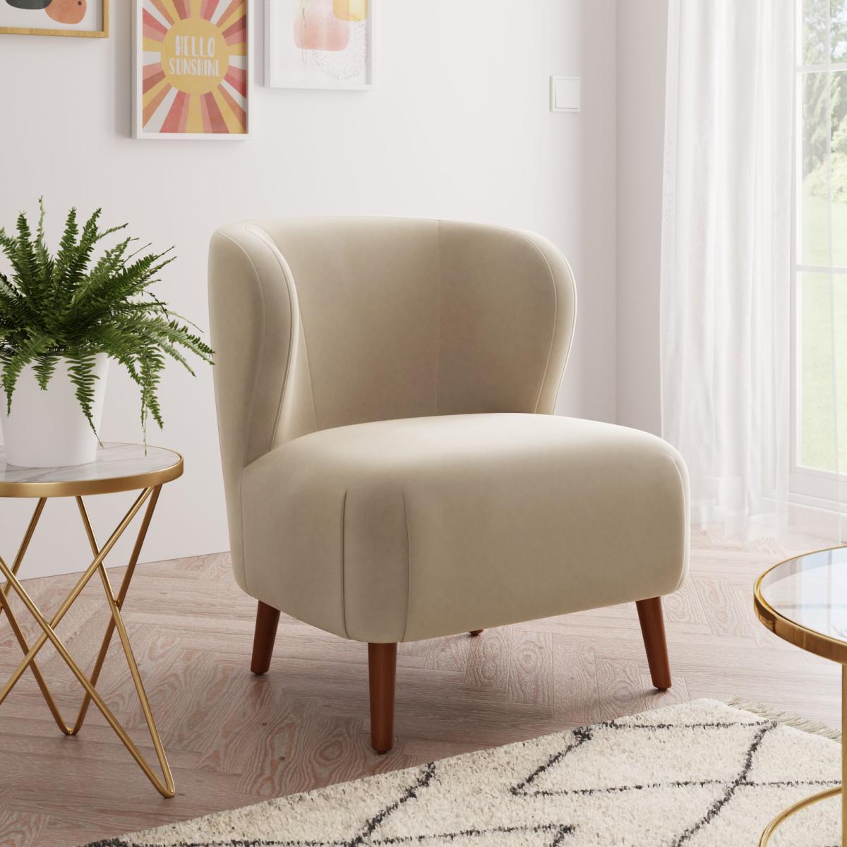 I love this velvet chair for its versatile charm and timeless appeal. Its neutral tones allow it to blend seamlessly into a range of interiors, from minimalist modern to cosy traditional spaces. The soft, plush velvet adds a touch of luxury without feeling overly formal, making it perfect as an accent piece in living rooms, bedrooms, or even a stylish reading nook. For styling, consider pairing it with patterned cushions or a contrasting throw to add dimension, and keep the surrounding decor simple to let the chair stand out as a focal point. Its compact size also makes it a practical choice for smaller rooms or corner placements.