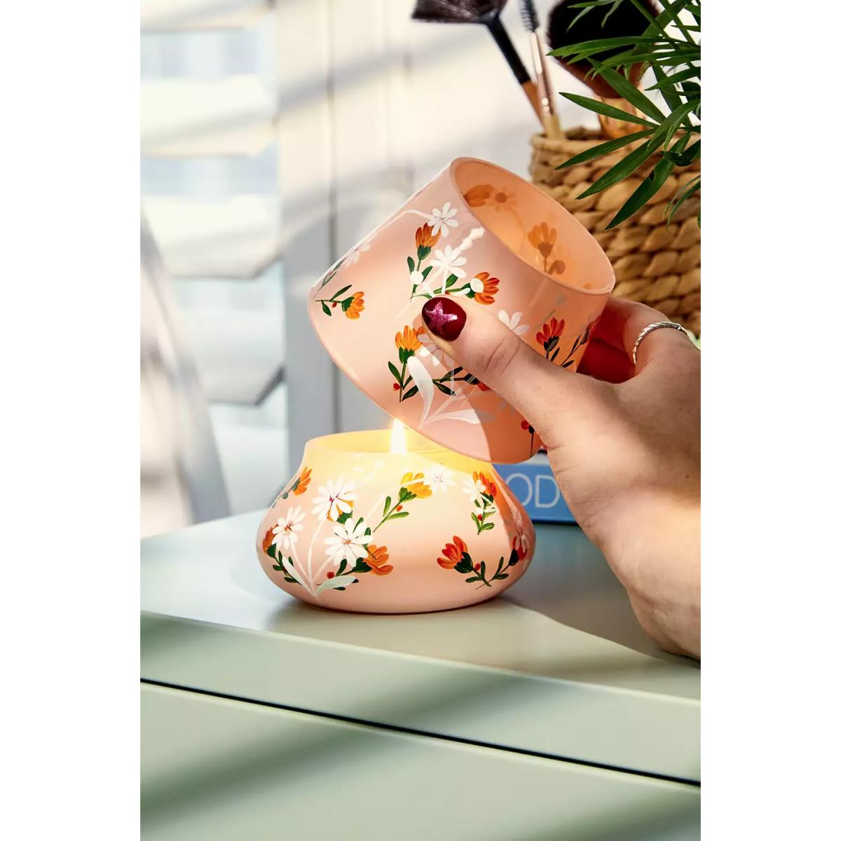 Elevate your space with this pretty floral candle. Features a shaped glass vessel with a removable cap top and scented wax inside. Complete with a painted finish. **Content + Care** \- Wax, Glass \- Wipe clean