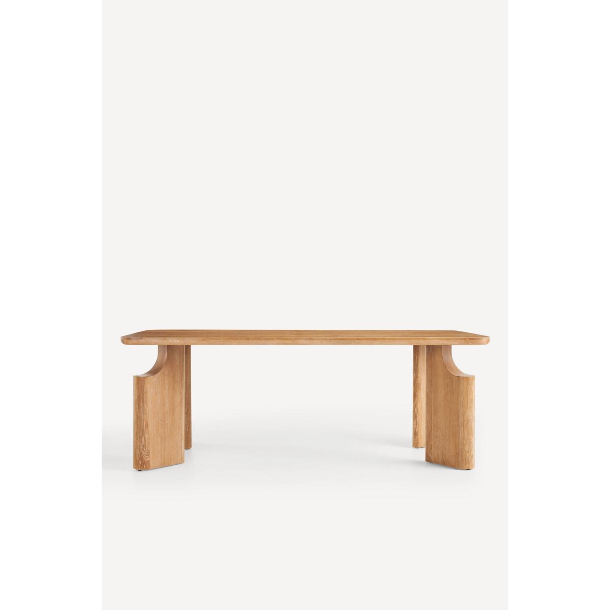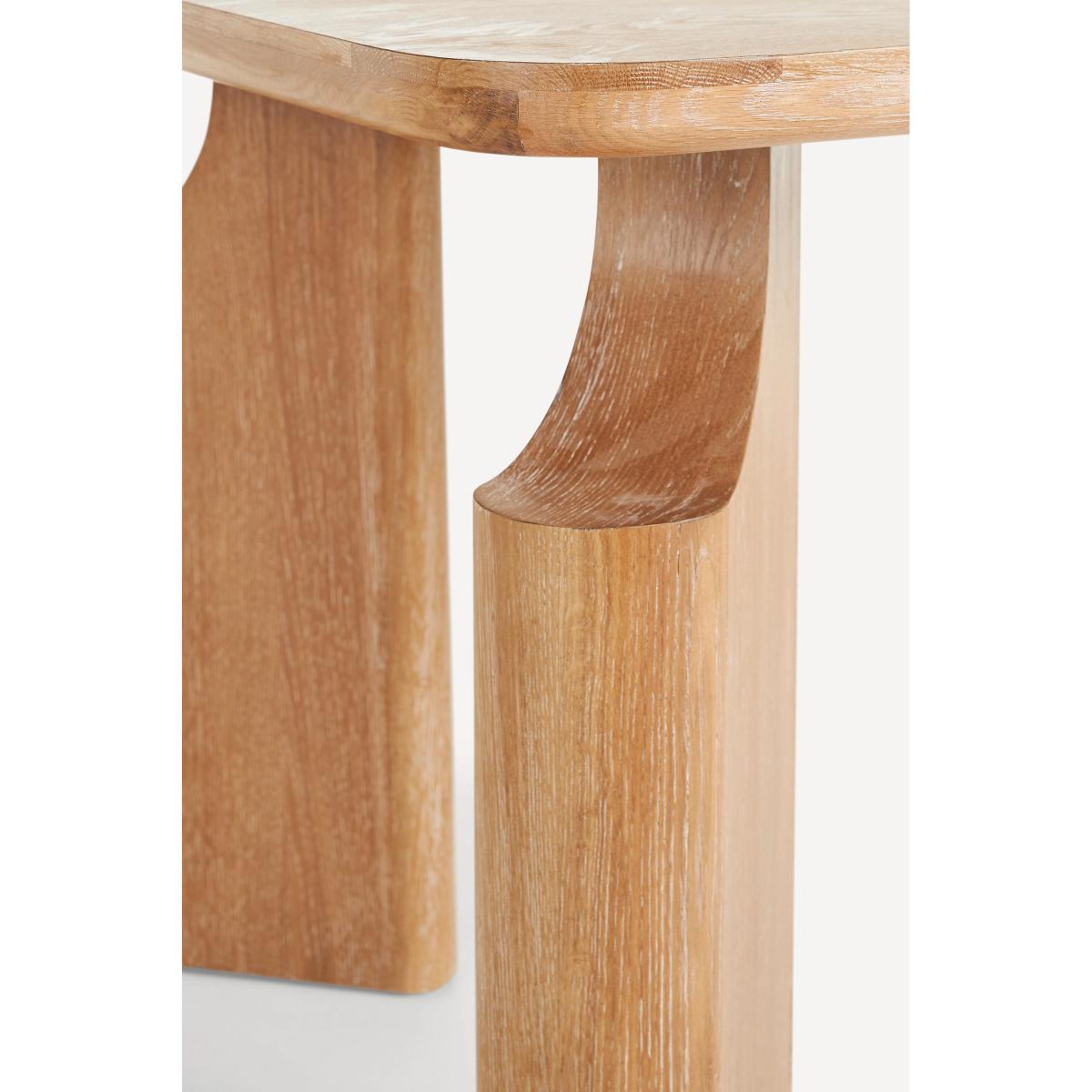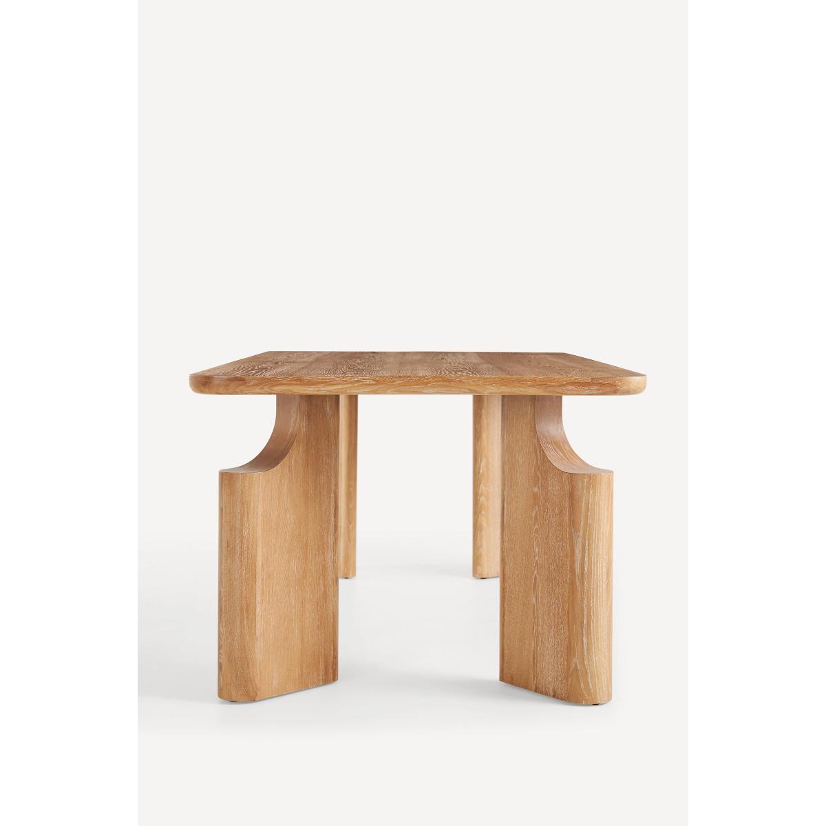 A fusion of traditional craftsmanship and modern design, the Ava Dining Table is a sculptural statement piece that sets the scene for memorable gatherings. * Solid oak wood dining table * Slight variation in natural wood texture may occur * Sealed with clear lacquer for protection * Comfortably seats six people * This piece is intended for indoor use * Some assembly required * Imported