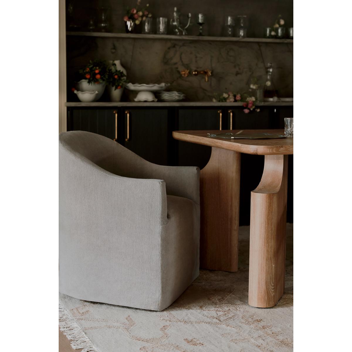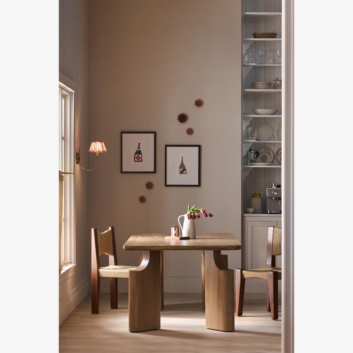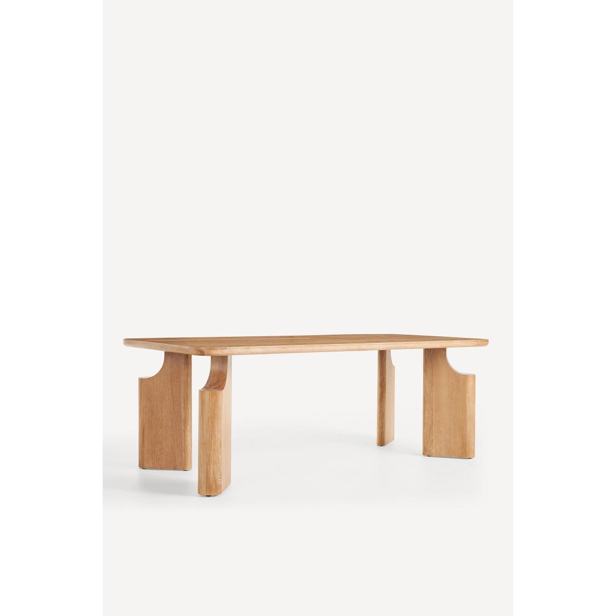A fusion of traditional craftsmanship and modern design, the Ava Dining Table is a sculptural statement piece that sets the scene for memorable gatherings. * Solid oak wood dining table * Slight variation in natural wood texture may occur * Sealed with clear lacquer for protection * Comfortably seats six people * This piece is intended for indoor use * Some assembly required * Imported