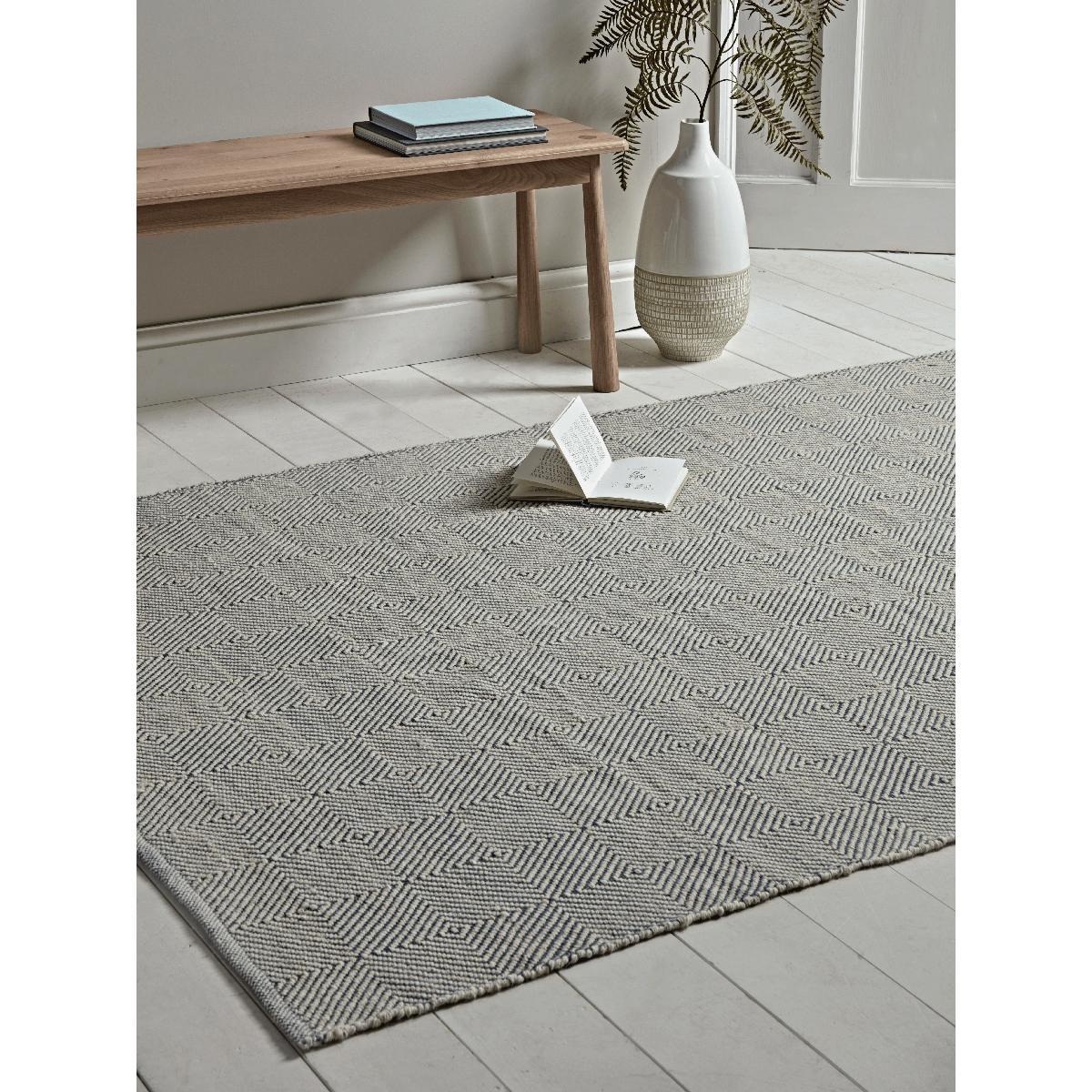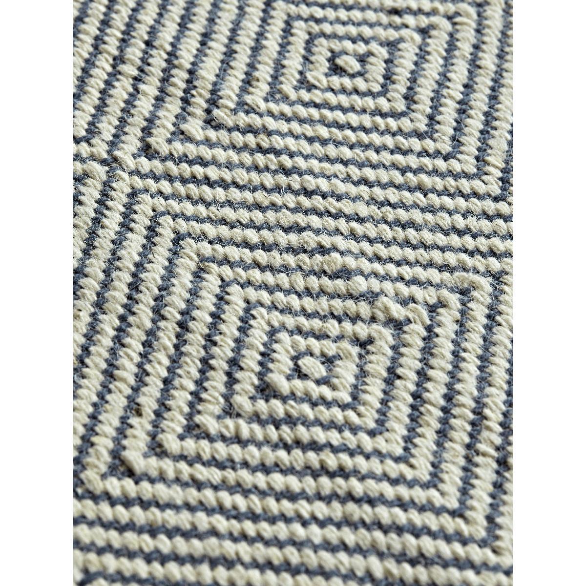 Crafted from cosy wool and cotton in a simple, tiled geometric inspired weave, our Ava Rug will introduce warm colour to your home. Durable and comforting, with a soft cream background and a faded, navy geometric pattern, our contemporary rug is perfectly versatile and timelessly stylish. Looks great in a neutral interior over wood flooring, keeping your feet nice and toasty.
