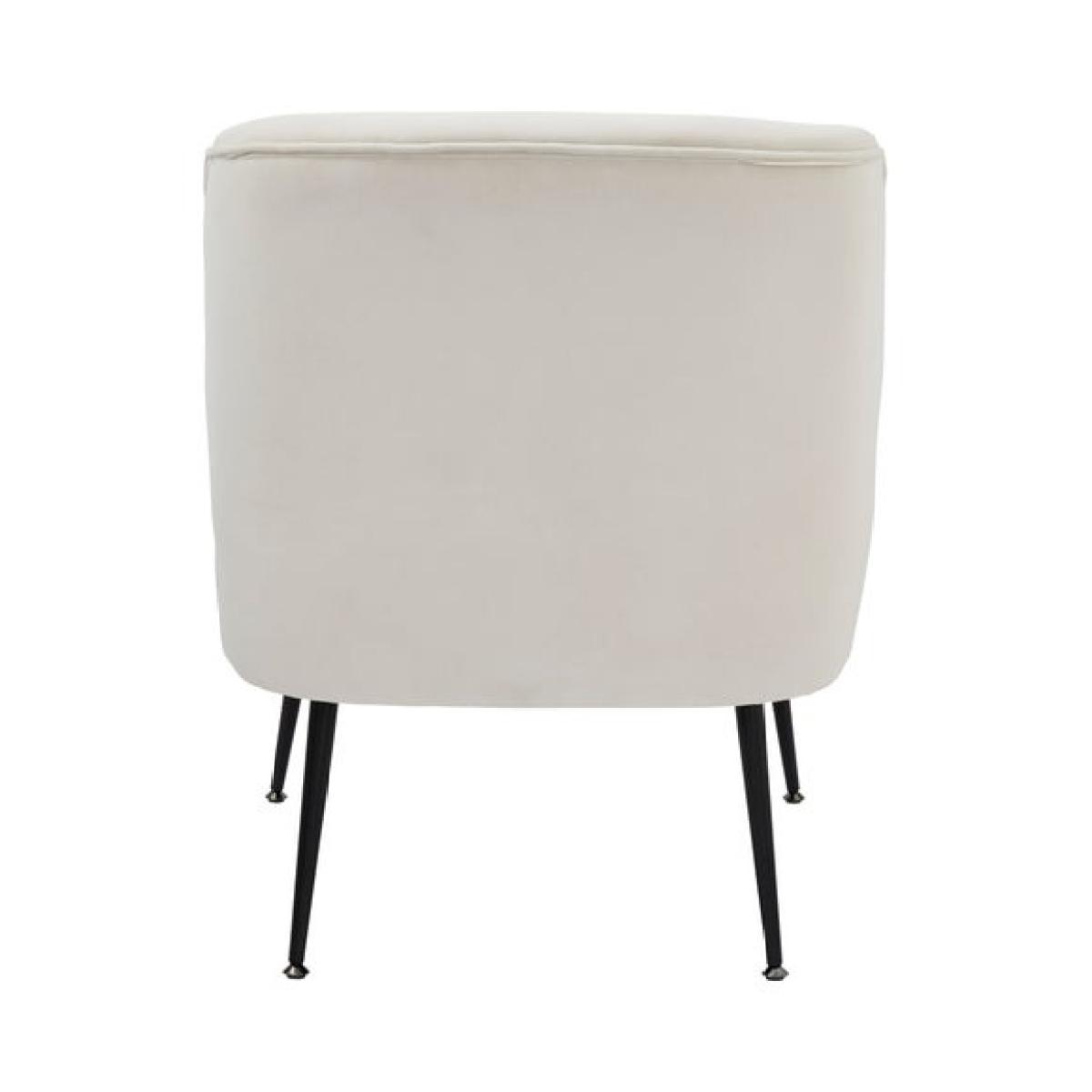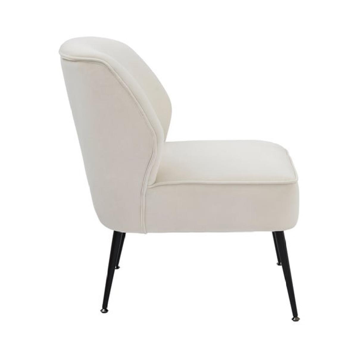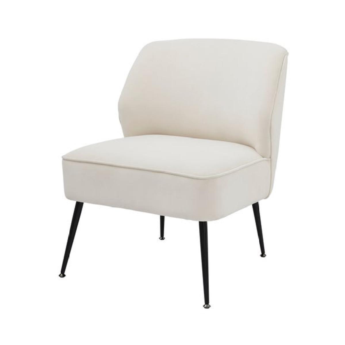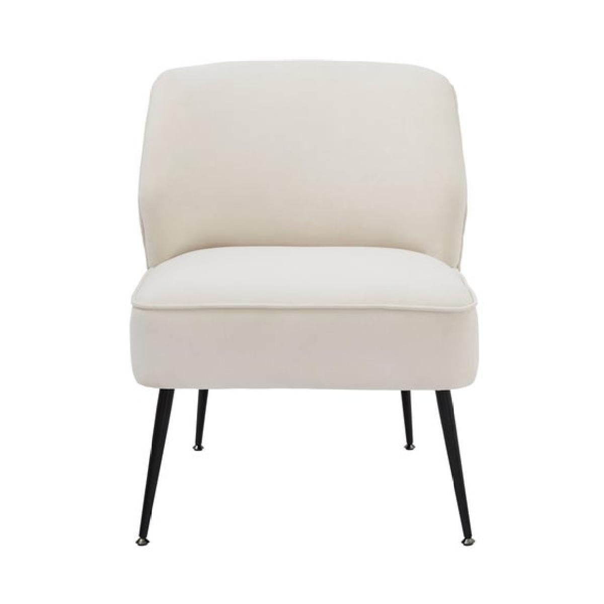 * Curved accent chair * Soft velvet upholstery * Slim black metal legs * Medium foam support Effortlessly stylish, this curved accent chair brings modern elegance to any room. Upholstered in soft natural coloured velvet, it offers a smooth, inviting feel that’s perfect for relaxing. The slim black metal legs add a sleek contrast and keep the silhouette clean and contemporary. With medium foam support, it strikes a comfortable balance between softness and structure, which is ideal for living spaces, reading corners or bedrooms.