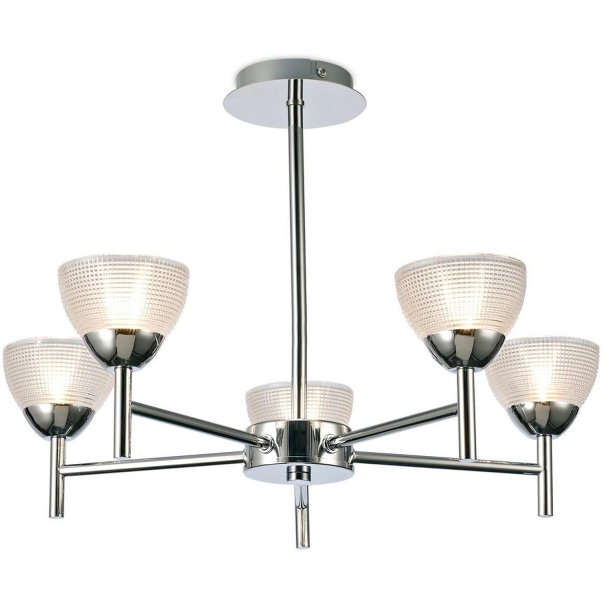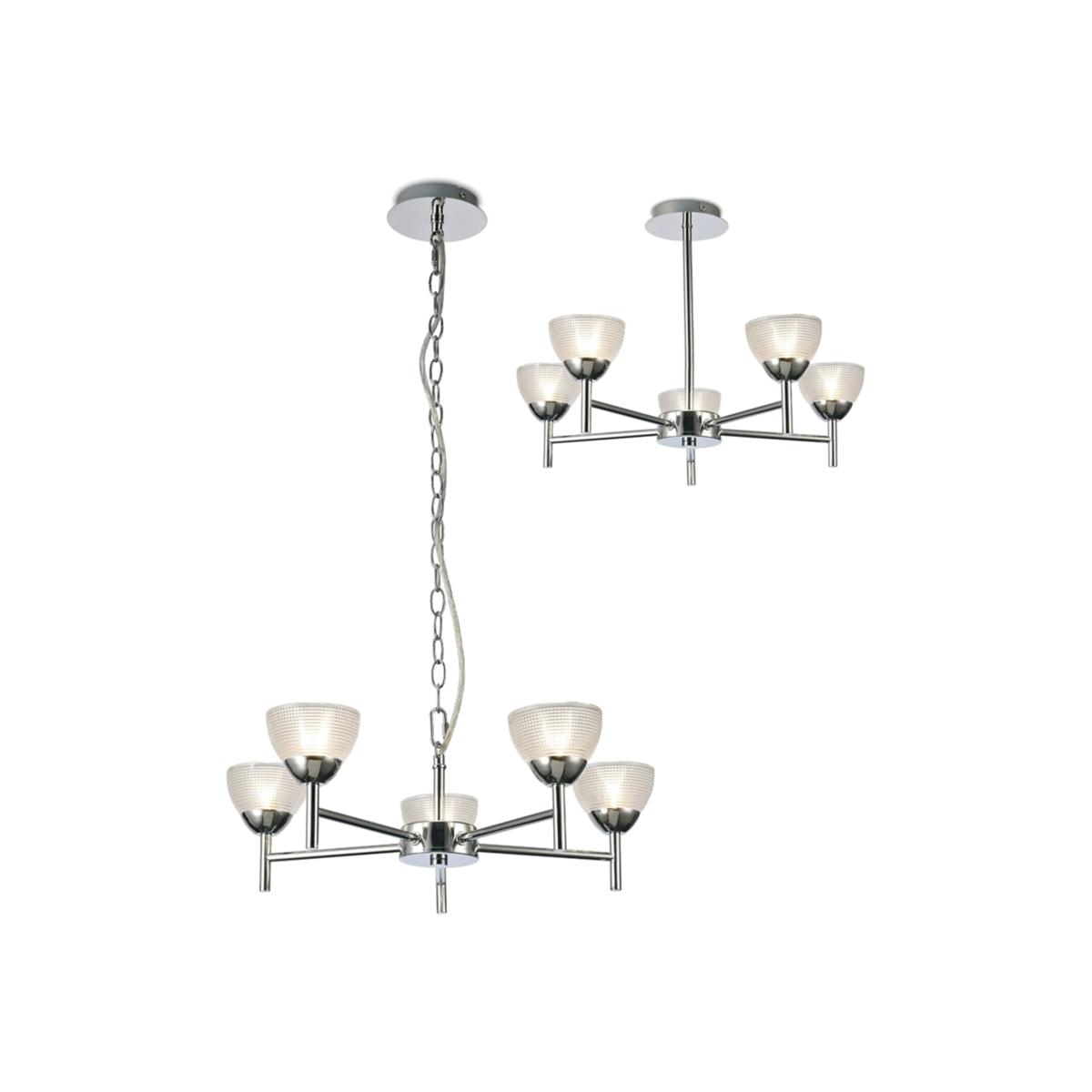 The uncomplicated and understated design of this range adds to its ability to be used in a wide range of room settings. The simple clean lines and tubular polished chrome frames are paired with a unique clear prismatic cone glass to transform the fixtures into a more modern and eye-catching collection. The two adjustable pendants are available in either a 3 or 5 light, each can be ideally matched to the single wall lamp. The ceiling lights can be converted to semi ceiling fixtures.