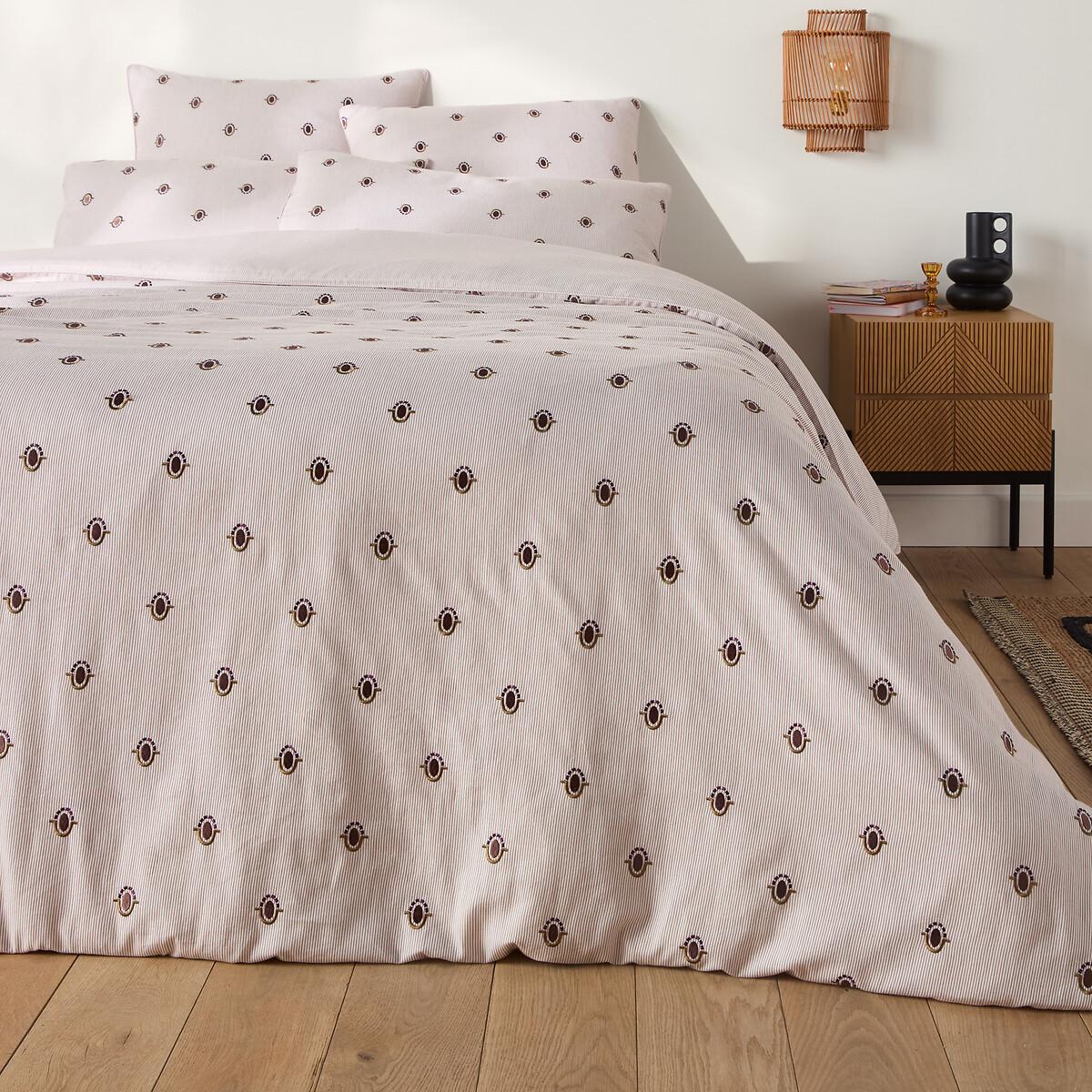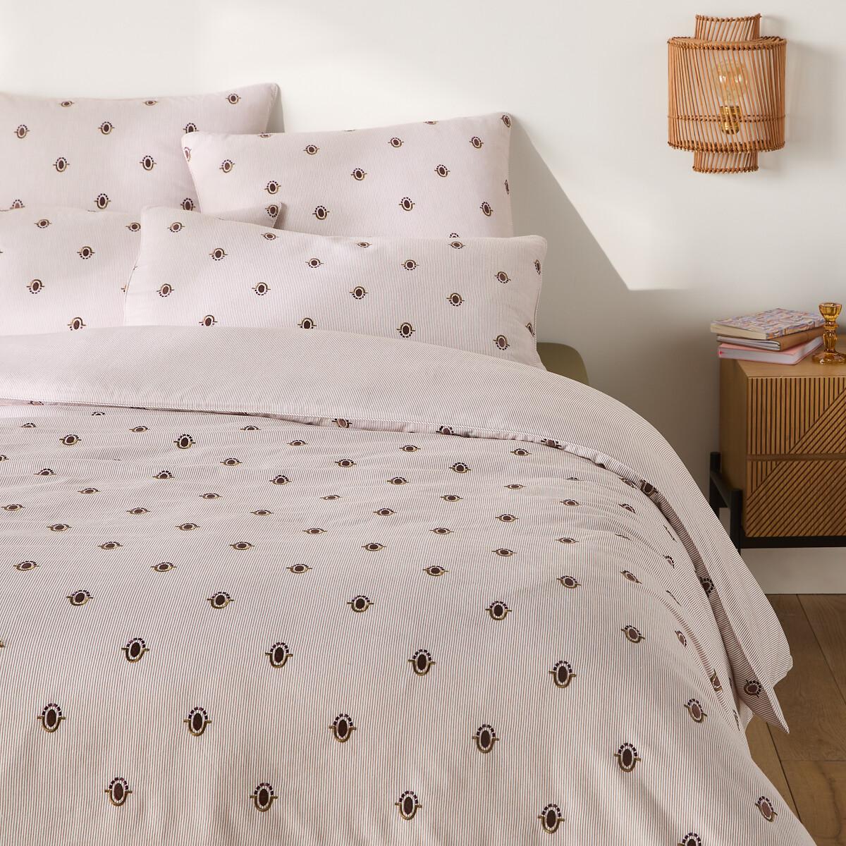 Dyed woven stripes and "totemic" embroidery inspired by ethnic and tribal motifs... The Avara bed linen, in washed cotton, is the work of La Redoute Intérieurs designers. The washed cotton has been delicately bleached during its manufacture. Soft, supple and comfortable, it softens over time. Its slightly wrinkled appearance is incredibly on-trend, and it does not require ironing. Product Details • 100% cotton • Washed cotton • On one side fine stripes in dyed woven fabric with ethnic embroidery, on the other side stripes in dyed woven fabric • Straight buttoned hem. As the seasons change, add your own personal touch by mixing the Avara range with our range of Scenario plains. Care Advice • Machine washable at 60°C • By washing your laundry at 40°C instead of 60°C, you limit energy consumption. Dimensions • 140 x 200cm: Single • 200 x 200cm: Double • 240 x 220cm: King • 260 x 240cm: King • OEKO-TEX® Standard 100. Standard 100 certification by OEKO-TEX® tests textile products for harmful substances via an independent, international label.