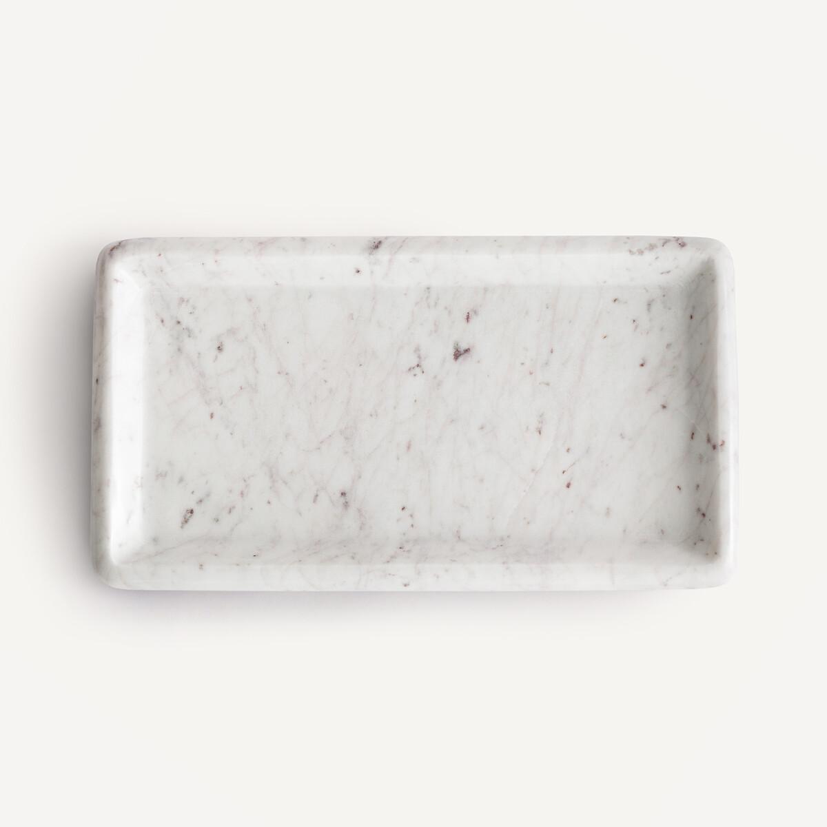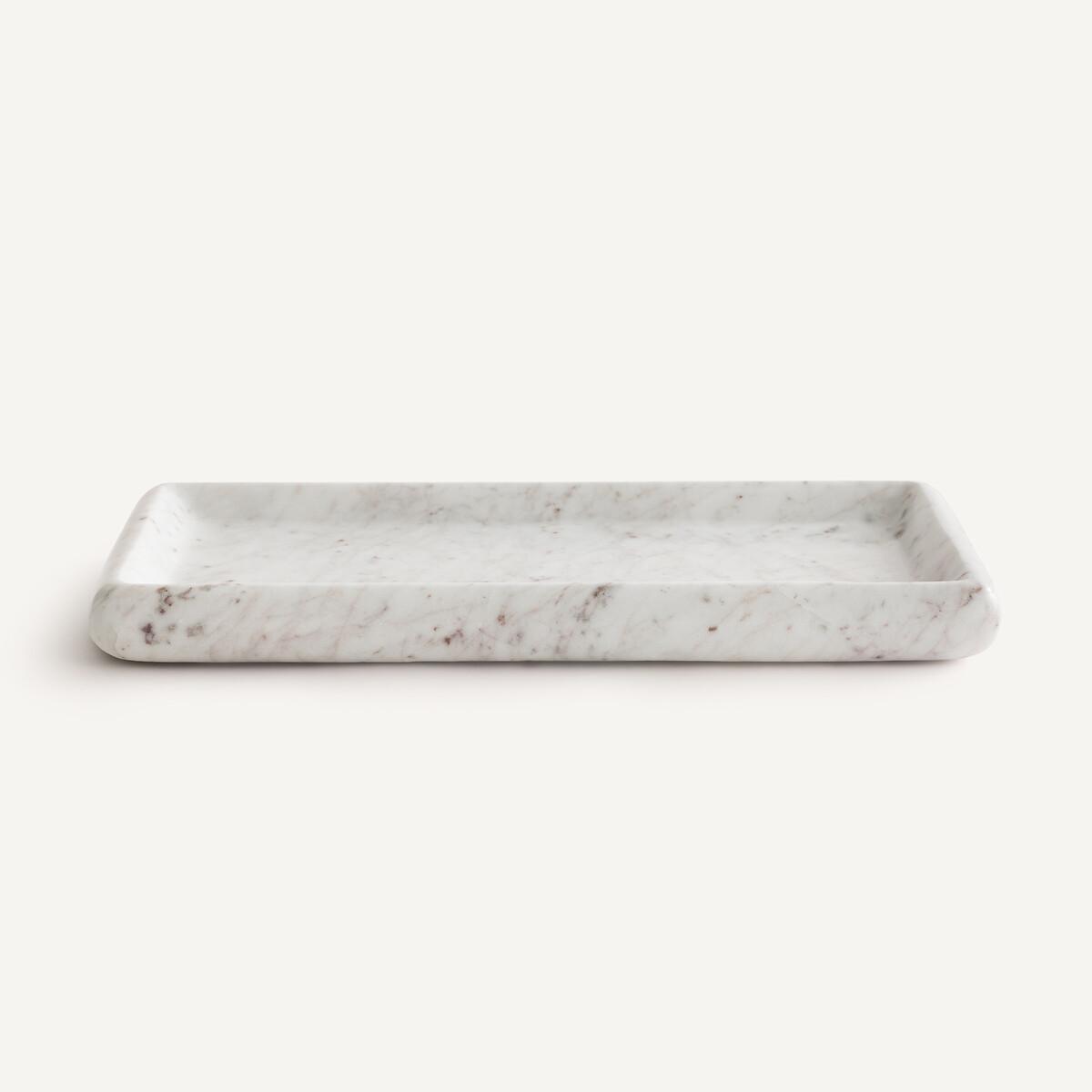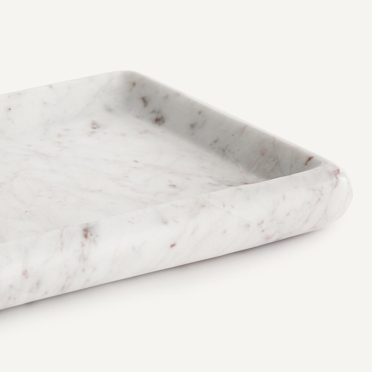 A subtle play of contrasts on a marble tray, where clean lines meet gentle curves. This unique piece highlights all the facets of marble, a noble material with organic beauty and singular nuances. Product Details • Rectangular grey marble tray • Each piece is unique so the marbled effect may vary. Care Advice • Marble is a naturally porous material that is sensitive to stains. Acid, anti-limescale or bleach-based products are not recommended. Dimensions • Width: 36cm • Thickness: 3cm/1" • Depth: 20cm Parcel Dimensions • 1 parcel • W46 x H13.5 x D28cm. 3.8kg
