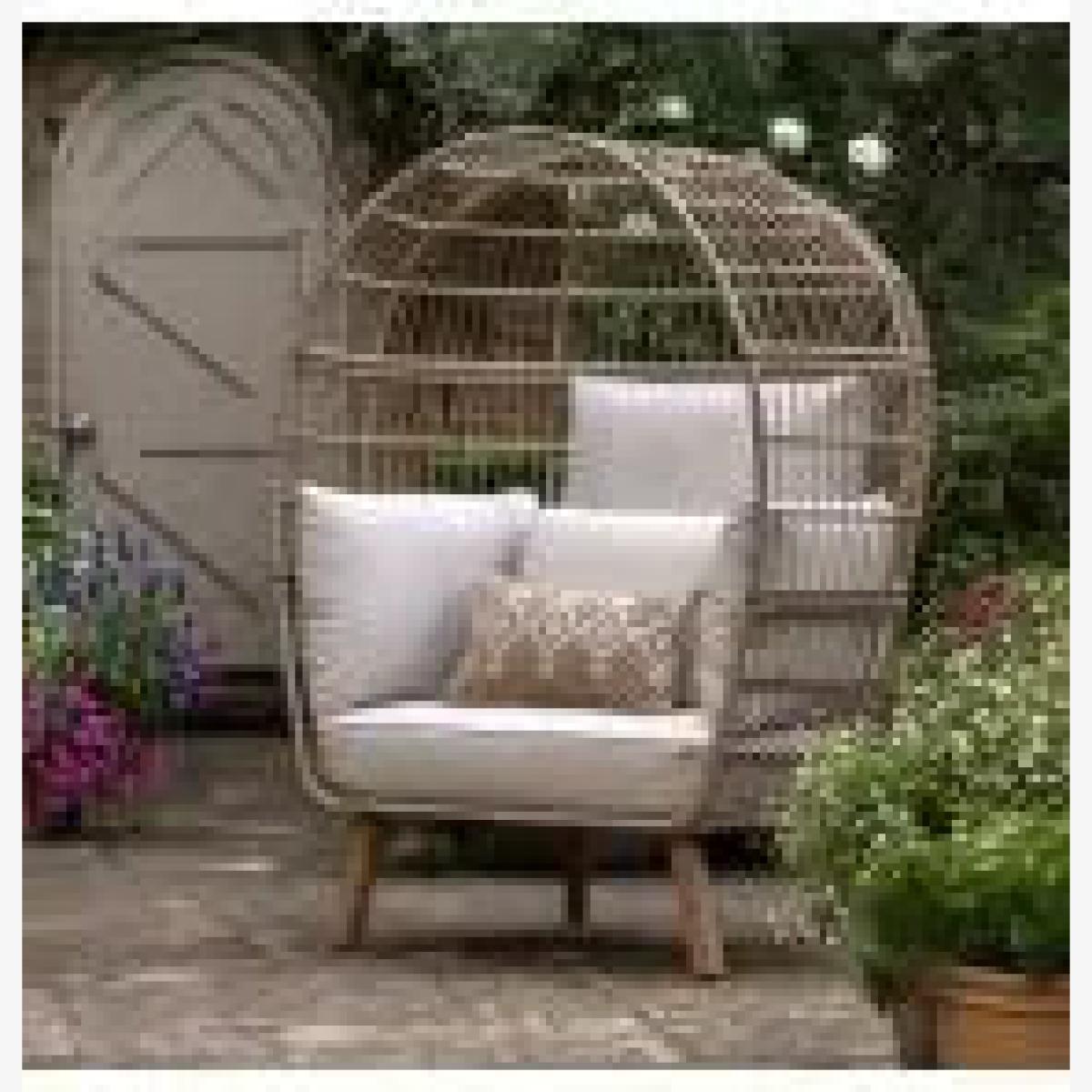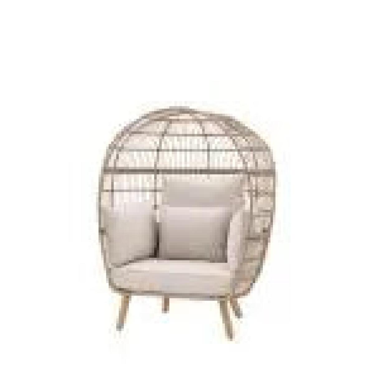 Crafted with a blend of natural wicker and plush cushions, this chair offers a cocoon-like retreat for relaxation and reflection. The unique design adds a touch of whimsy to any patio or garden, while the comfortable cushioned seating ensures hours of blissful relaxation. Crafted with a blend of natural wicker and plush cushions, this chair offers a cocoon-like retreat for relaxation and reflection. The unique design adds a touch of whimsy to any patio or garden, while the comfortable cushioned seating ensures hours of blissful relaxation.