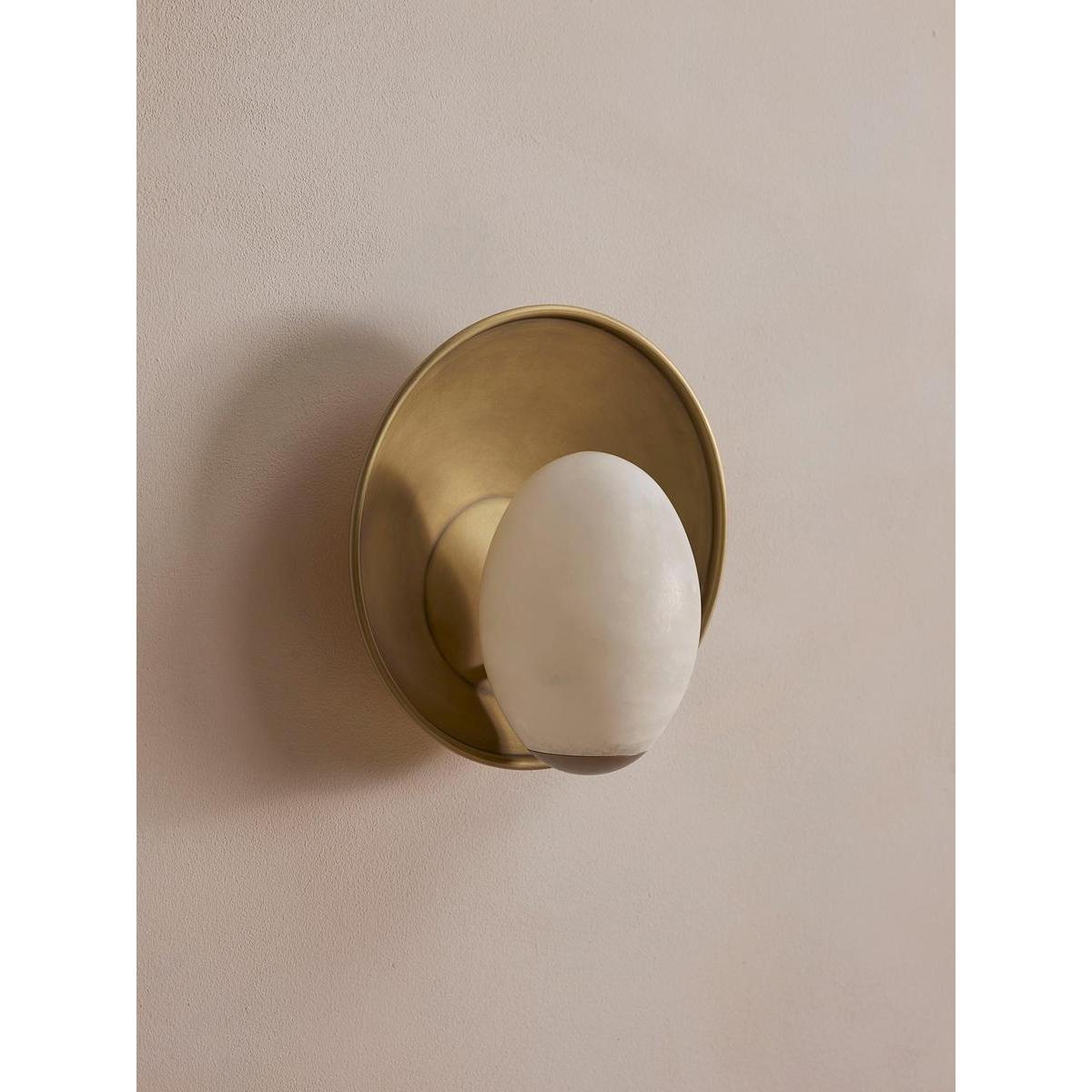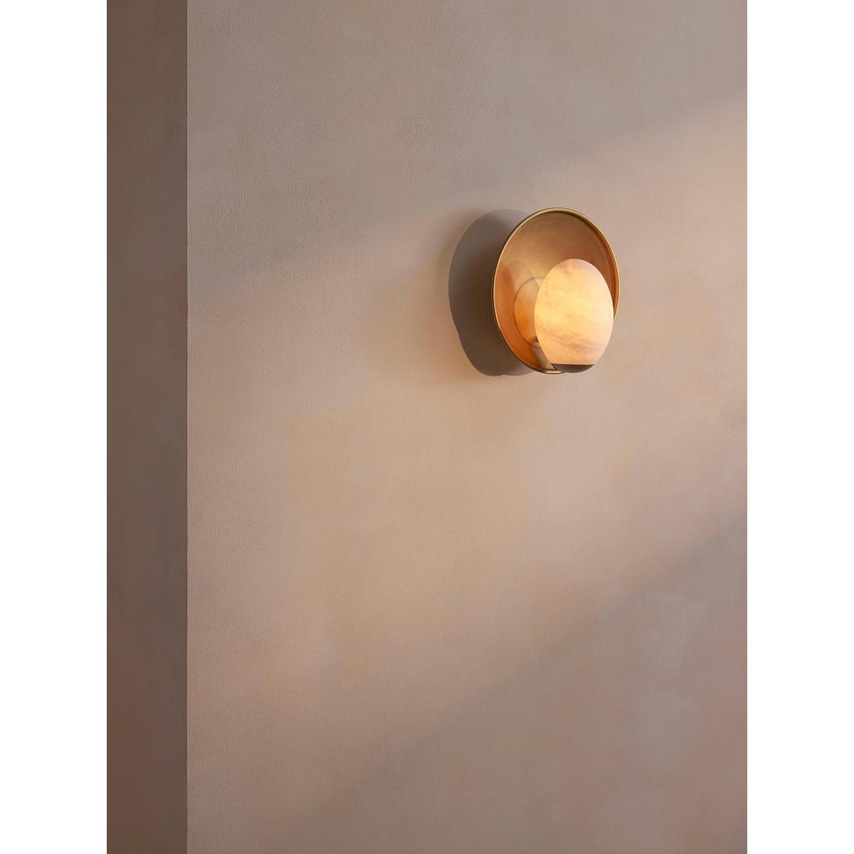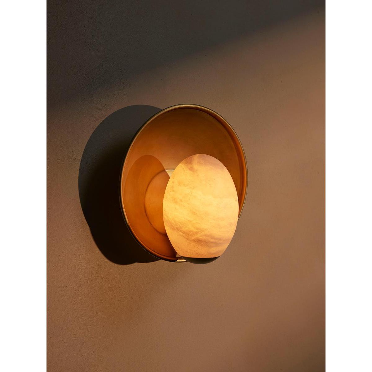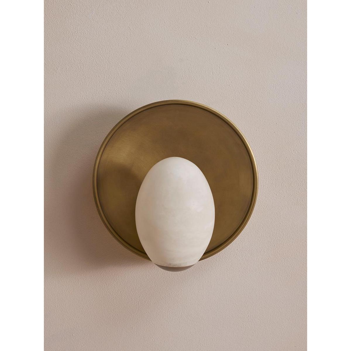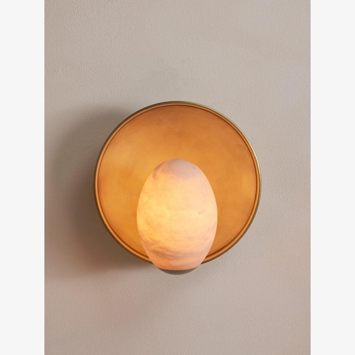 A mix of contemporary shapes and finishes makes our Avena wall light one of a kind. Inspired by Soho House Rome, an alabaster oval globe sits on a precious brass dish with a circular back. Each pattern in the alabaster stone varies, making each piece unique to the next. Place either side of the bathroom mirror for a soft lighting scheme with a modern twist.