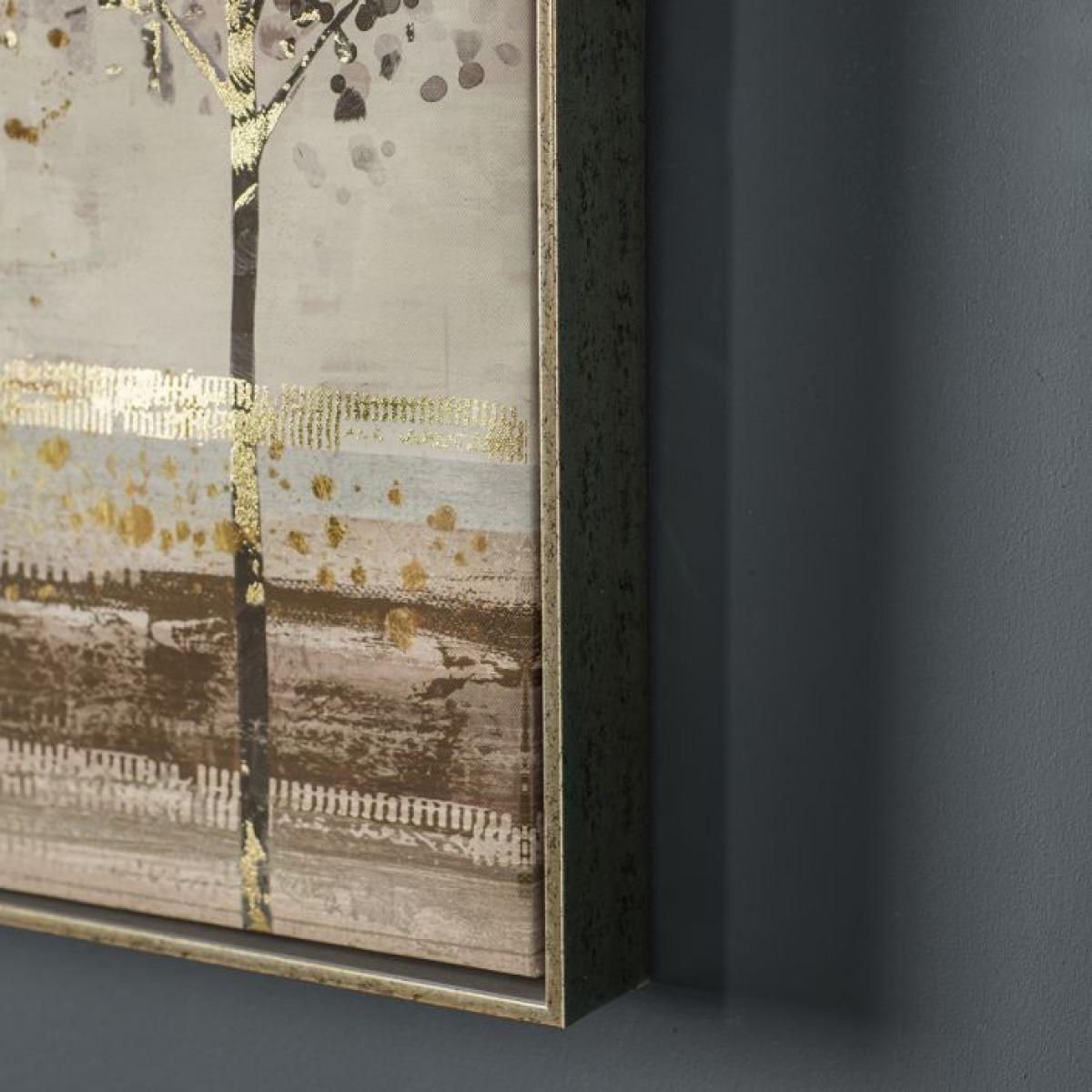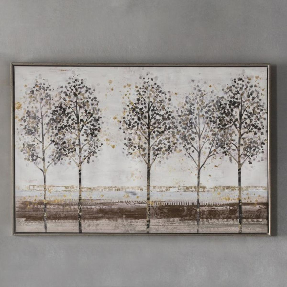 Delicate impression of trees in soft light. Orientation: Landscape. Fixing Type: D-Ring. Framed:Yes. Colour: Natural.