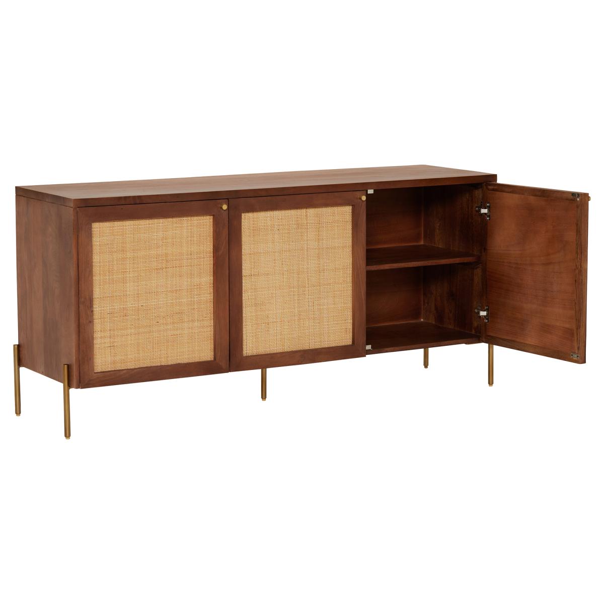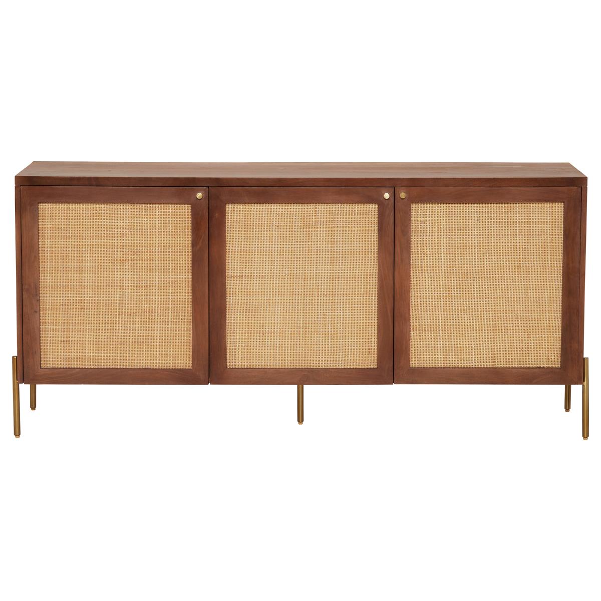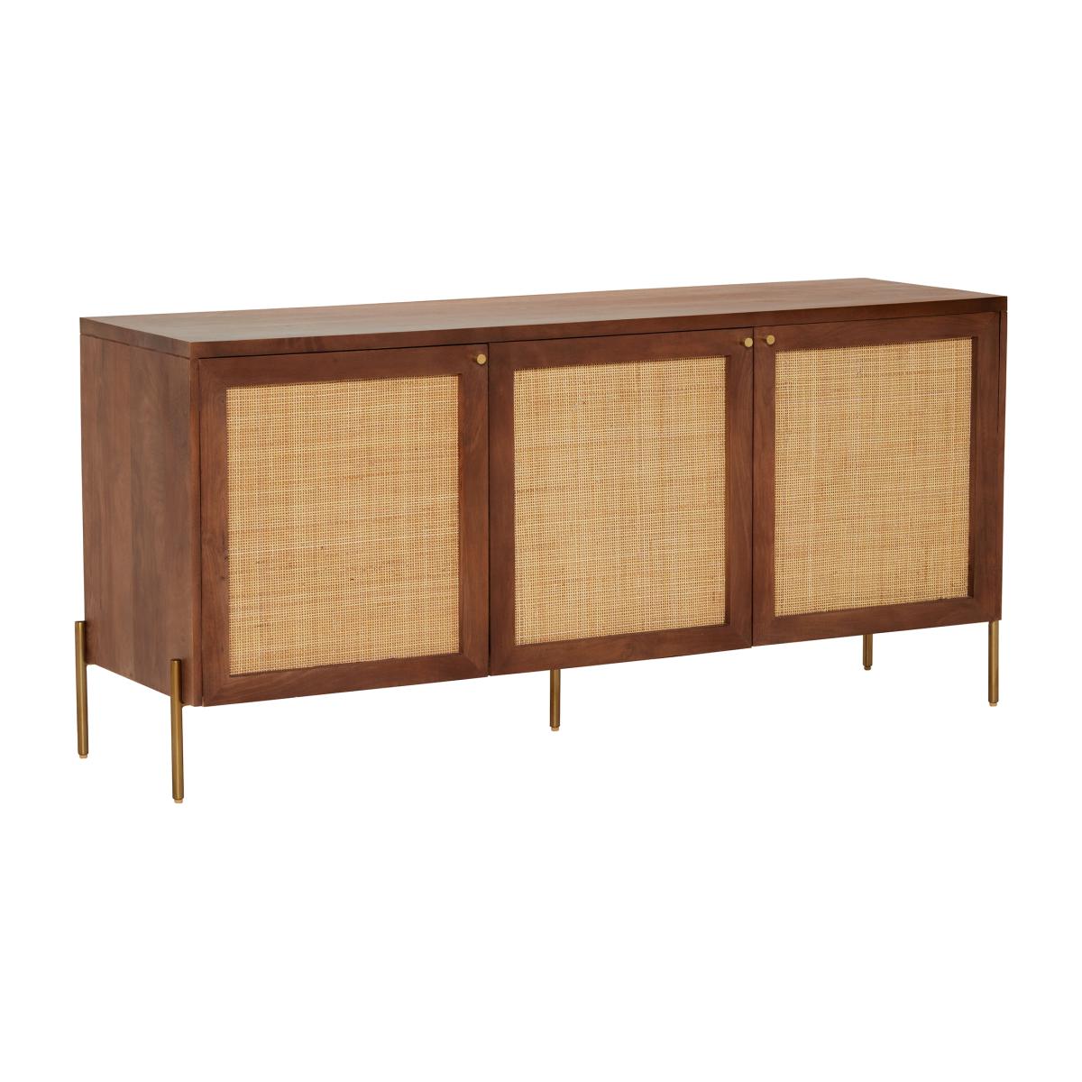 The Avery 3 Door Sideboard is a fantastic and practical piece of furniture to display on and store items you do not wish to be seen. Made from solid mango wood in a walnut finish with rattan front panels then finished off with gorgeous brass finish legs and handles achieving a striking look. Perfect in a dining room or hallway and neutral enough to blend beautifully with other unique furnishings.