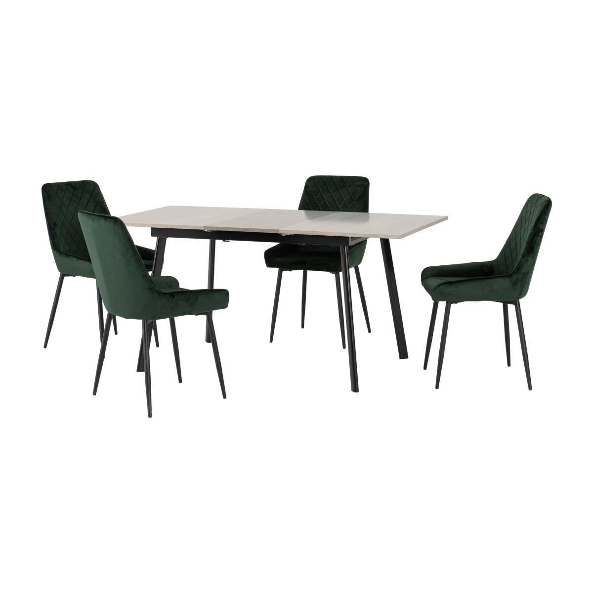 Avery Concrete Effect Extendable Dining Table with 4 Green Dining Chairs Green