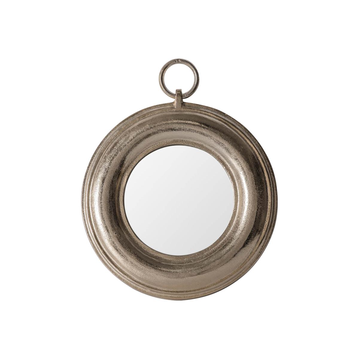 The Avery Mirror features a wide metal frame with the added detail of a hanging loop, in a lovely champagne silver finish. Avery is also available in gold and silver finishes. Shape: Round. Material: Aluminium, Glass, MDF. Colour/Finish: Silver. Mount Type: Wall.