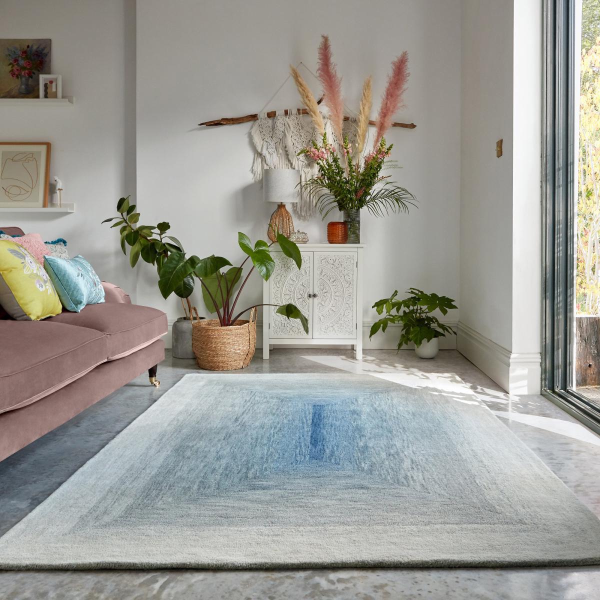 Embrace soothing shades and create a serene foundation in your home with the Avery Wool Ombre rug. Soft underfoot with a gradual ombre design, the Avery rug is perfect for adding some seascape inspired tones to your space. Hand-tufted by rug artisans in Northern India, the 100% wool pile maximises sound and warmth insulating qualities, enabling you to create your own peaceful oasis. Try Avery Wool Ombre rug in bedrooms and living areas for a comfy, cosy space. Don't forget to buy our handy anti-slip mat,. Here,. Available in a range of sizes. This is a dense hand-made rug. When opening, re-roll your rug pile out and leave in a warm room for 24 hours before putting in place, this will help to reduce wrinkles and curling from packing. Do not pull any loose threads, please cut them carefully with scissors to remove. Avoid prolonged exposure to direct sunlight as this may cause fading of the colour. Turn your rug regularly to ensure even wear and to reduce pressure marks from furniture. Wool fibres may shed when new and during use, this is a characteristic of this product and is not a defect and should reduce with normal use and regular vacuuming. Before using any cleaning products on your rug, test on an inconspicuous area first to ensure it does not affect the colour. Clean spills immediately by blotting with a clean dry white cloth - do not rub as this may stain the fibres. Vacuum your rug regularly to remove everyday dirt, we recommend the use of a suction type vacuum cleaner as a rotating vacuum brush can cause damage to the pile surface. We recommend the use of an anti-slip mat beneath your rug to prevent it from slipping and sliding out of place. Latex is used on the back of this rug. Please do not leave babies or young children unsupervised on this rug.
