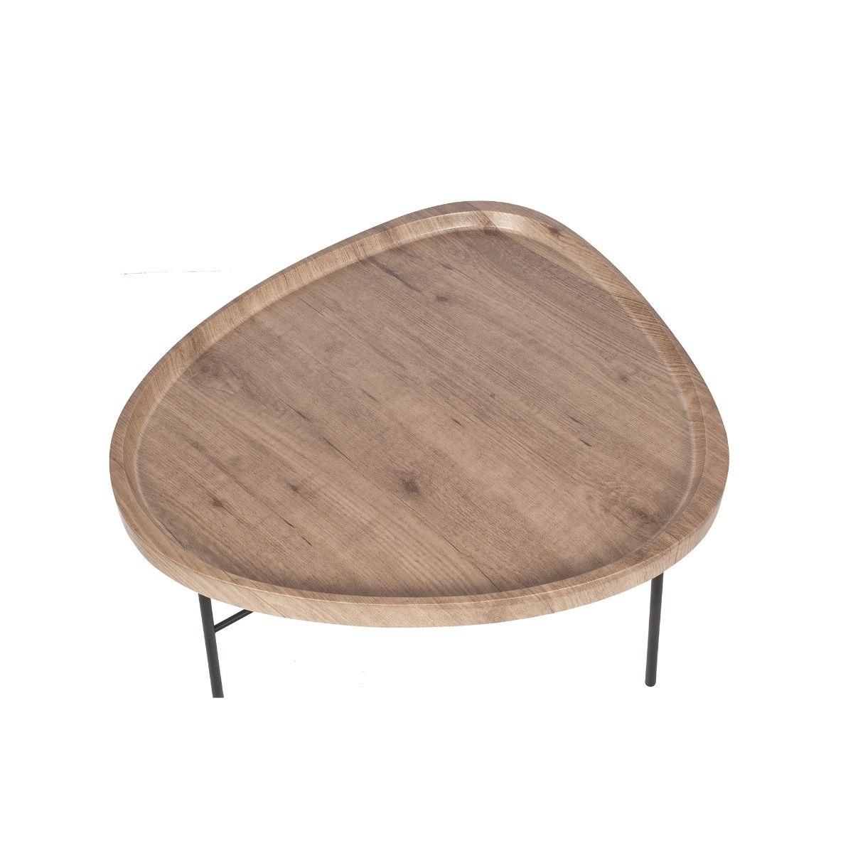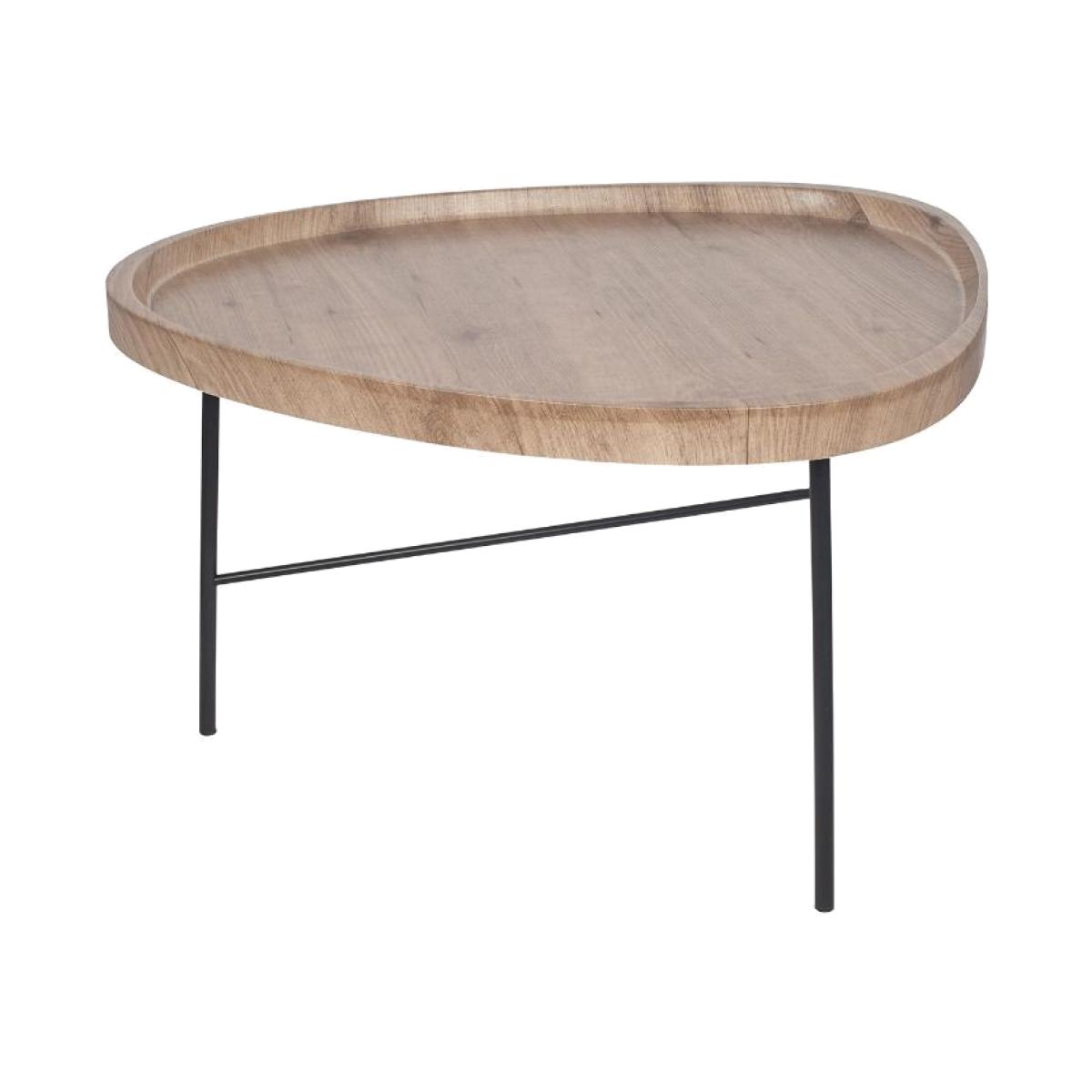 I really like this coffee table because of its sleek dark wood effect combined with the black tear-shaped legs, giving it a modern yet warm feel. It works particularly well in contemporary or industrial-inspired interiors, but can also add a touch of sophistication to minimalist or Scandinavian spaces. When styling, I suggest keeping the surface uncluttered with a statement tray, some books, or a small plant to emphasise its clean lines. Using its shape creatively, such as placing it off-centre or layering with smaller tables, can add visual interest. Its neutral tones make it versatile, easily pairing with both bold colours and softer hues.