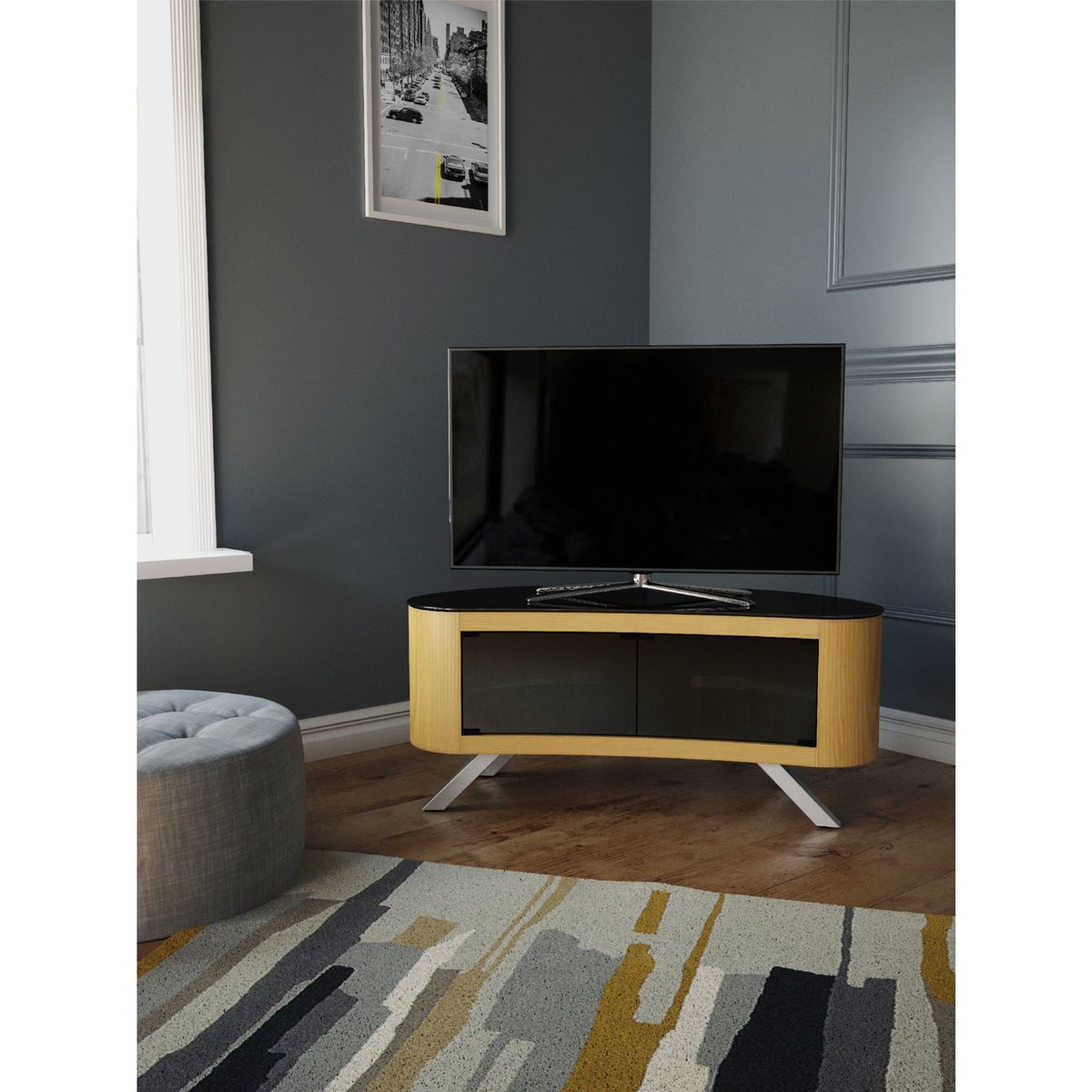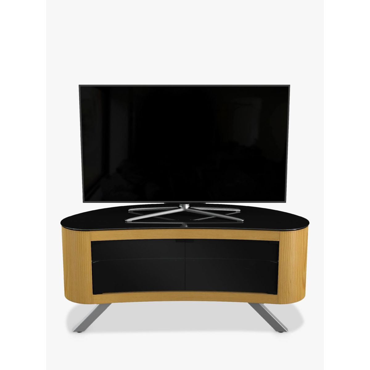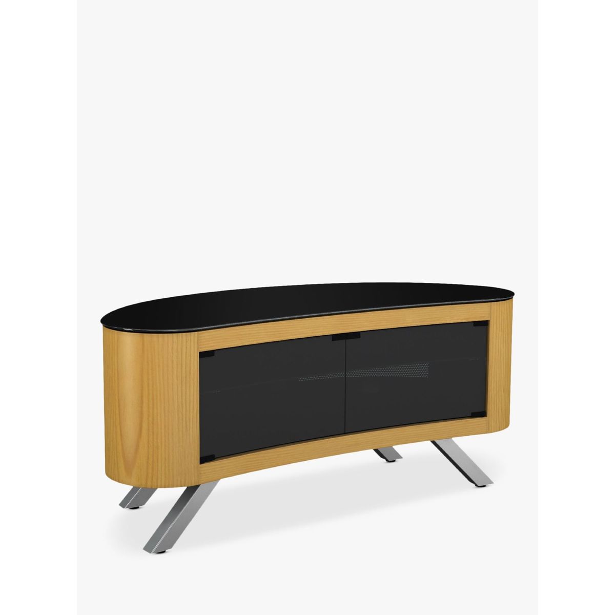 AVF's sleek TV stand has a unique, curved shape that's perfect for placing in corners or flat against walls. The smooth concave to the front perfectly complements curved TVs, but works just as well with flat screens. Solid & Sleek Build Beside its polished and elegant look, this stand is made of sturdy wood veneer with a 55kg maximum TV weight, giving stiff support for your TV. The two lower shelves can hold 15kg each too. This way, you'll store all of your AV equipment like set-top boxes, games consoles and DVD players with absolute security. Affinity Premium Back Panel The specially designed back panel lets you attach the AVF Mounting Column (sold separately) to the back and suspend your TV above the stand. This way, you'll get more space without having to drill into the wall. Match It To Your Living Room By tinkering with the included support legs, you'll have three height options to help you get the best viewing angle. Furthermore, it comes with a column that you can easily attach to the back and securely mount your TV above the stand (FL602KI. T mount required, sold separately). If you choose to leave the column out, you'll have a nifty cable management gap at the back to feed wires through and hide them from sight. The decision is yours. Practical Storage There are several storage options so you can get the best from your accessories, including fully closed with remote-friendly glass doors, open fronted or fully open. Please note: Any maximum TV size quoted is a recommendation only and the exact dimensions of the TV's pedestal/feet should be checked to ensure it fits prior to purchase.