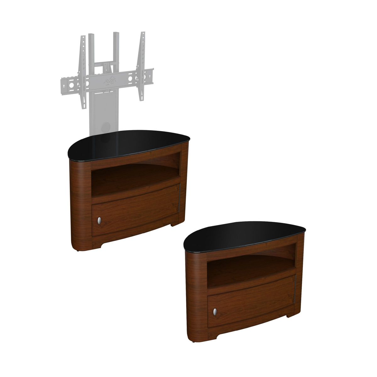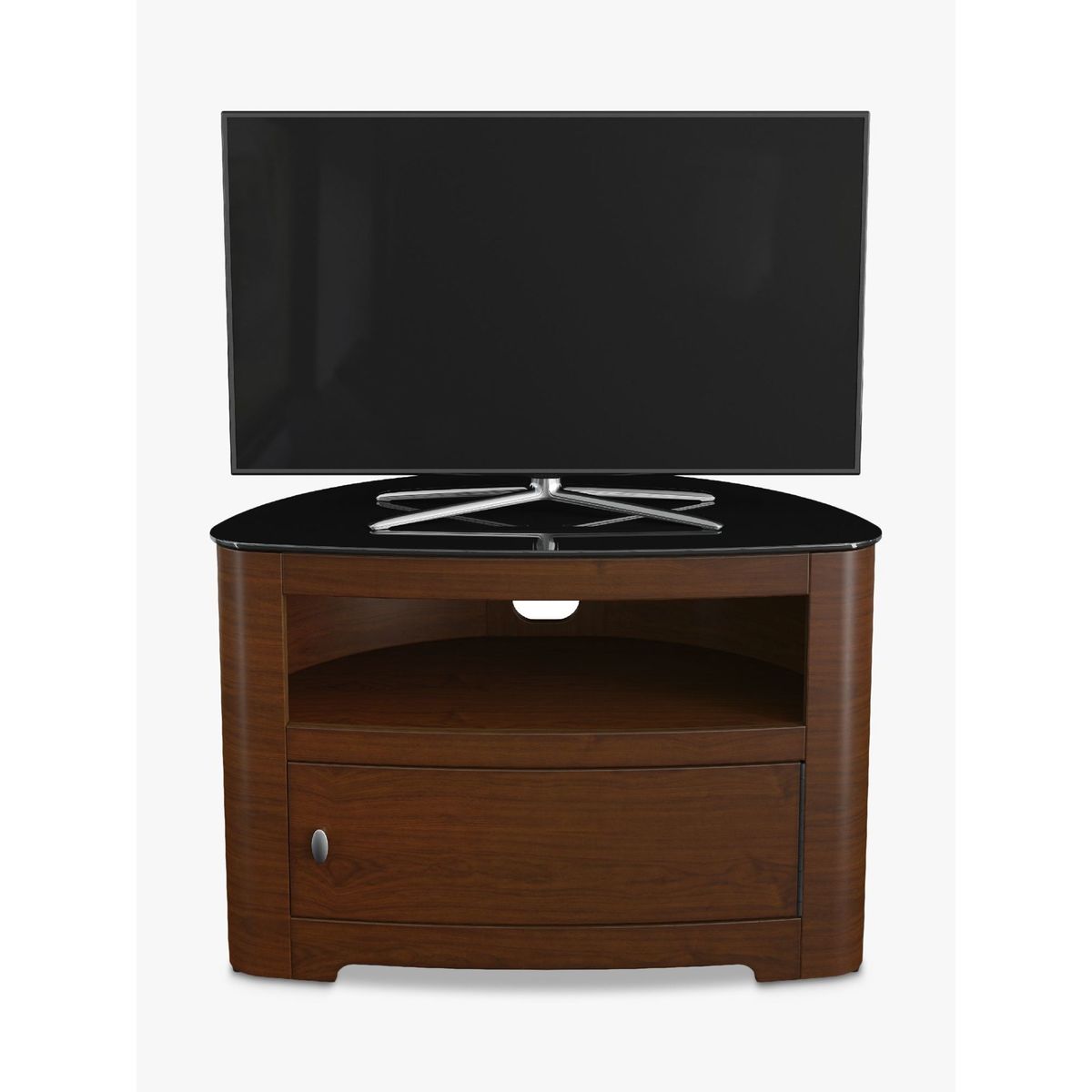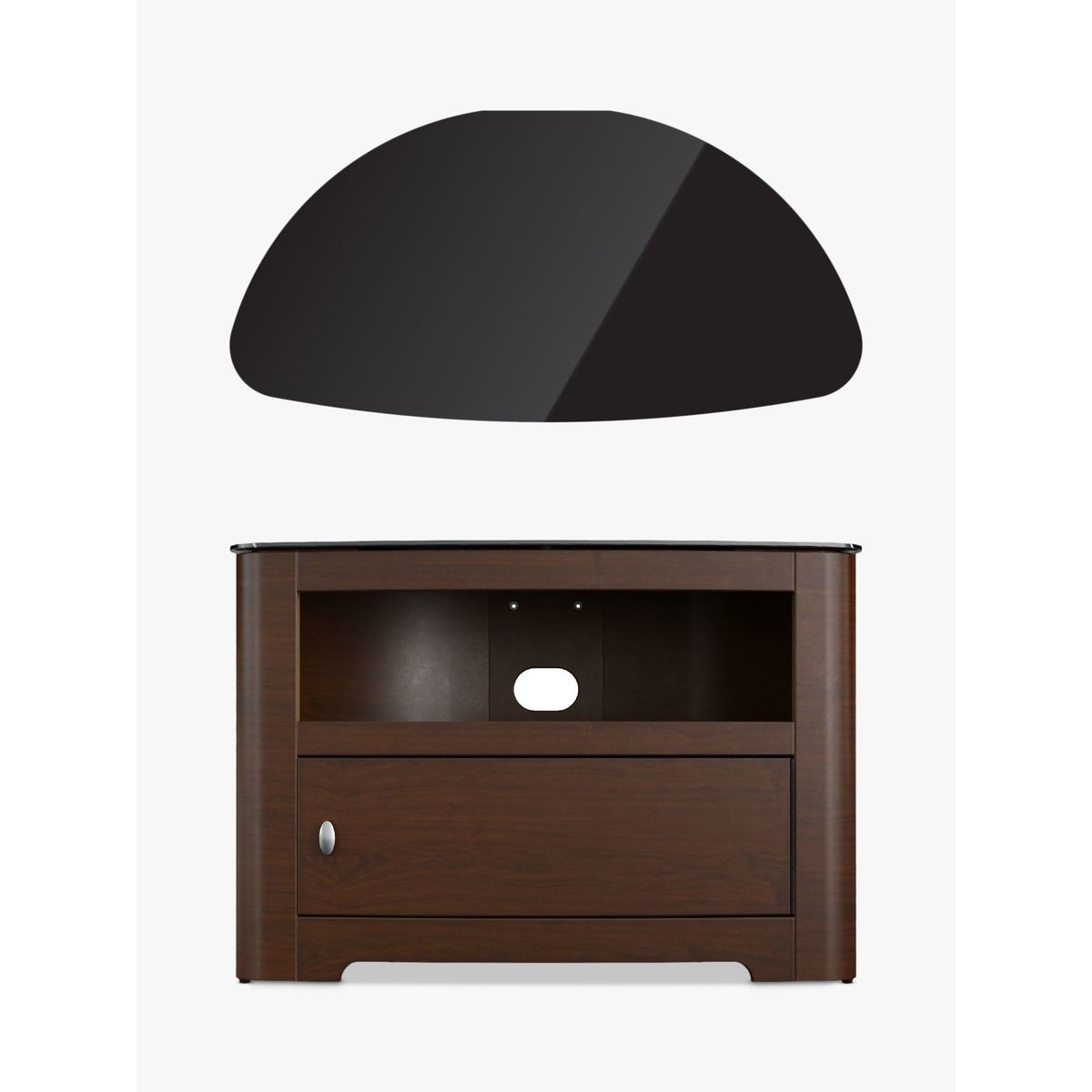 The AVF Affinity Premium Blenheim 800 TV stand is perfect for putting your TV centre stage. Strong enough to support your set along with its stand, a rounded back makes it ideal for corner positioning, while sleek design helps to keep unsightly cables out of the way. Affinity Premium Back Panel. The metal back panel lets you attach the AVF Mounting Column (sold separately) to the back and suspend your TV above the stand. This way, you'll get more space without having to drill into the wall. Also, as this back panel is well-ventilated, your kit will keep cool and audio from the likes of sound bars can circulate freely. Key features: This TV stand with open shelf and cabinet is designed in wood veneer featuring a matched door, and is perfect for positioning in the corner or flat to wall. The cabinet storage door features a piano hinge which offers 180-degree opening and full width access. Within the cabinet there is a slatted base panel for flow through ventilation. Cable management is provided to route TV and accessory cables. Incredibly easy to assemble. Please note: Any maximum TV size quoted is a recommendation only and the exact dimensions of the TVs pedestal/feet should be checked to ensure it fits prior to purchase.