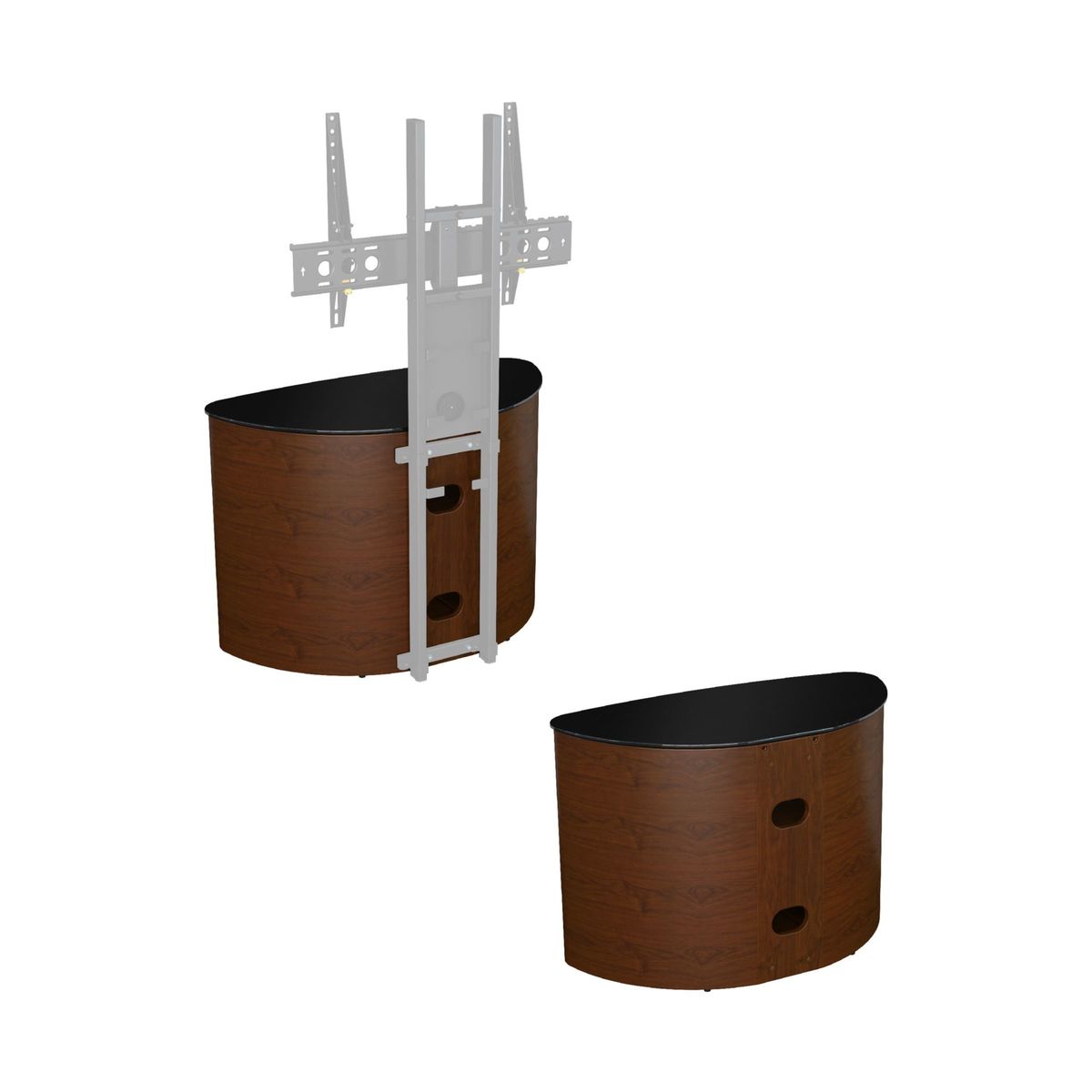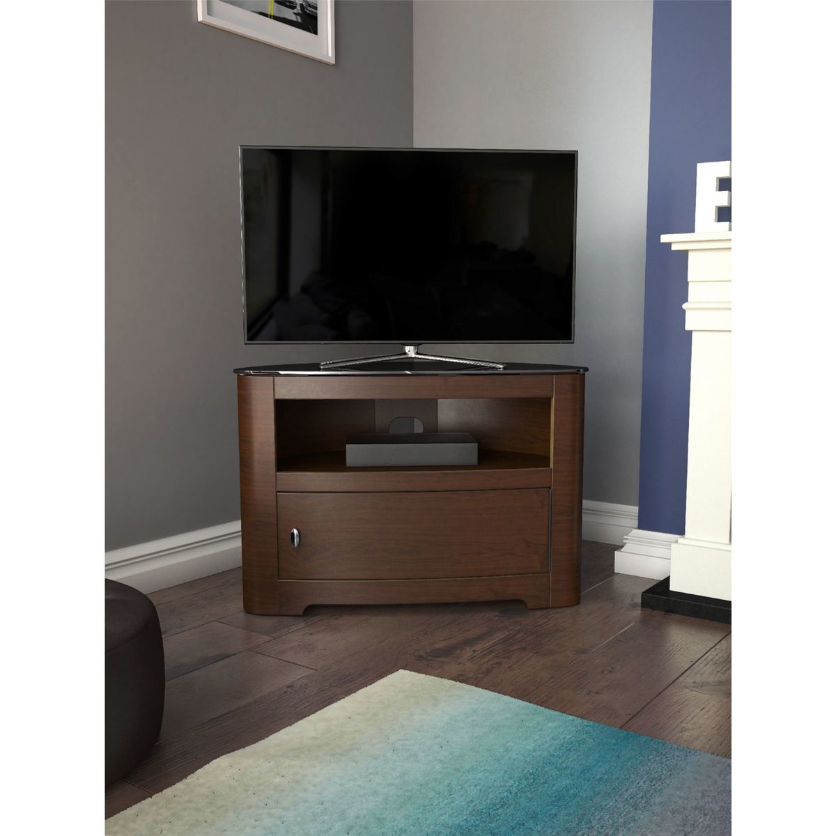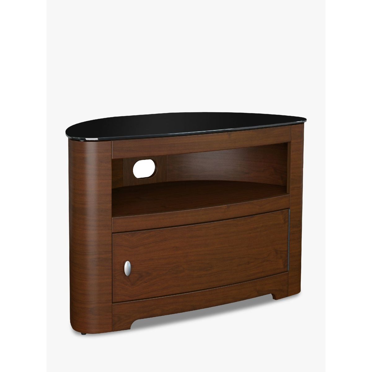 The AVF Affinity Premium Blenheim 800 TV stand is perfect for putting your TV centre stage. Strong enough to support your set along with its stand, a rounded back makes it ideal for corner positioning, while sleek design helps to keep unsightly cables out of the way. Affinity Premium Back Panel. The metal back panel lets you attach the AVF Mounting Column (sold separately) to the back and suspend your TV above the stand. This way, you'll get more space without having to drill into the wall. Also, as this back panel is well-ventilated, your kit will keep cool and audio from the likes of sound bars can circulate freely. Key features: This TV stand with open shelf and cabinet is designed in wood veneer featuring a matched door, and is perfect for positioning in the corner or flat to wall. The cabinet storage door features a piano hinge which offers 180-degree opening and full width access. Within the cabinet there is a slatted base panel for flow through ventilation. Cable management is provided to route TV and accessory cables. Incredibly easy to assemble. Please note: Any maximum TV size quoted is a recommendation only and the exact dimensions of the TVs pedestal/feet should be checked to ensure it fits prior to purchase.