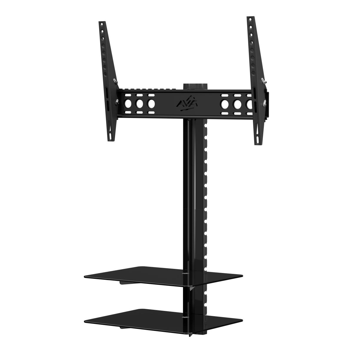 This TV mount is an all in one solution for your TV and AV accessories. The mount comes with 2 lower shelves, in which both are adjustable, that offers a place for all your AV accessories. The click and lock installation is easy to do!