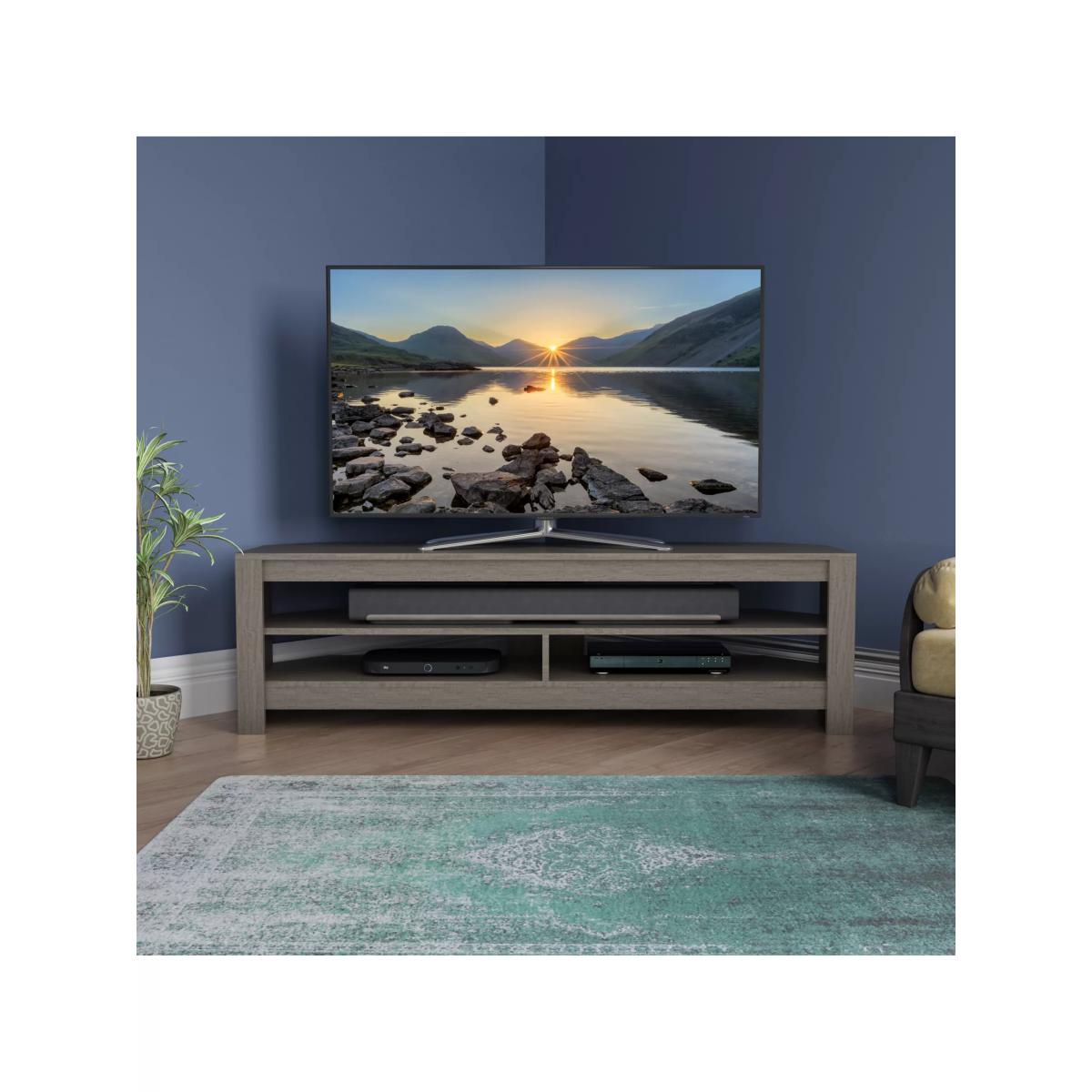 The Calibre unit is designed to fit equally well against the wall or in the corner of the room, providing ample space for your TV and home entertainment equipment. Constructed from sturdy and naturally attractive wood, it supports TVs of up to 65 inches and 40kg, with the lower shelves holding up to 10kg each. Natural wood Cable management features keep wires neatly out of sight Easy to assemble Any maximum TV size quoted is a recommendation only and the exact dimensions of the TV's pedestal/feet should be checked to ensure it fits prior to purchase.