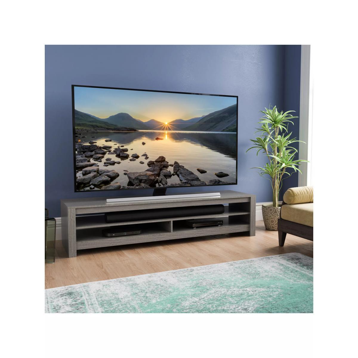 The Calibre unit is designed to fit equally well against the wall or in the corner of the room, providing ample space for your TV and home entertainment equipment. Constructed from sturdy and naturally attractive wood, it supports TVs of up to 85 inches and 55kg, with the lower shelves holding up to 10kg each. Natural wood Cable management features keep wires neatly out of sight Easy to assemble Any maximum TV size quoted is a recommendation only and the exact dimensions of the TV's pedestal/feet should be checked to ensure it fits prior to purchase.
