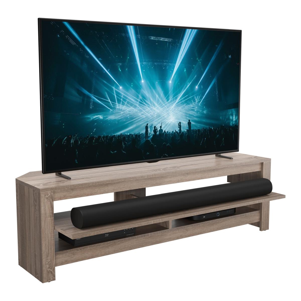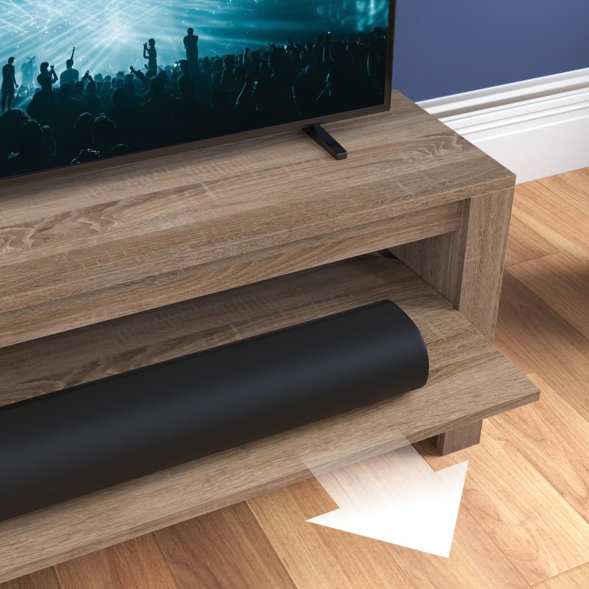 * Suitable for TVs up to 60” * Soundbar storage * Fits within a corner or along a flat wall Compact and full of charm, this 1.2m stand supports TVs up to 60" and 40kg. It features a handy pull-out shelf, allowing you to store your soundbar out of sight or extend it for better sound when needed. It fits neatly into a corner or sits flat against the wall.